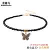 Colar com pingente de borboleta temperamental, moda, espinélio preto, colar de cristal de ouro 14k, gargantilha, corrente de clavícula preta