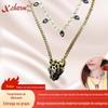 Europa e Estados Unidos fabricantes de jóias transfronteiriças atacado jóias design senso de luz personalidade de luxo multi-camada pingente série leopardo colar