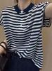 Moda Verão 2023 Camiseta Listrada de Manga Curta com Gola Polo para Mulheres Versão Coreana Caimento Solto Versátil Simples Top Tricotado