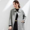 Casaco de cashmere dupla face Novo 2024 Feminino Comprimento médio Primavera e Outono Slim-fit Slim-fit Casaco de lã com gola de lã