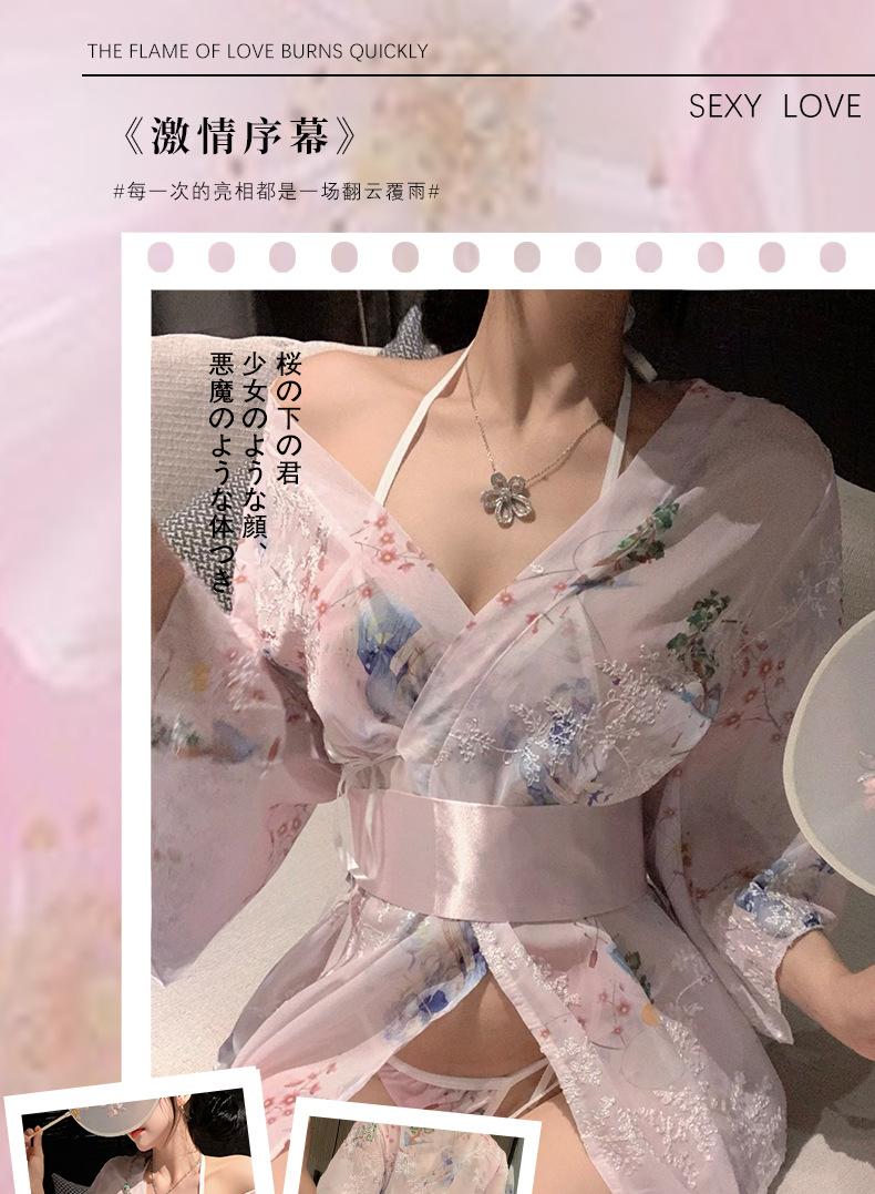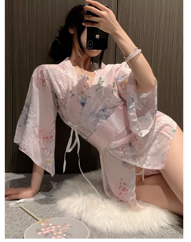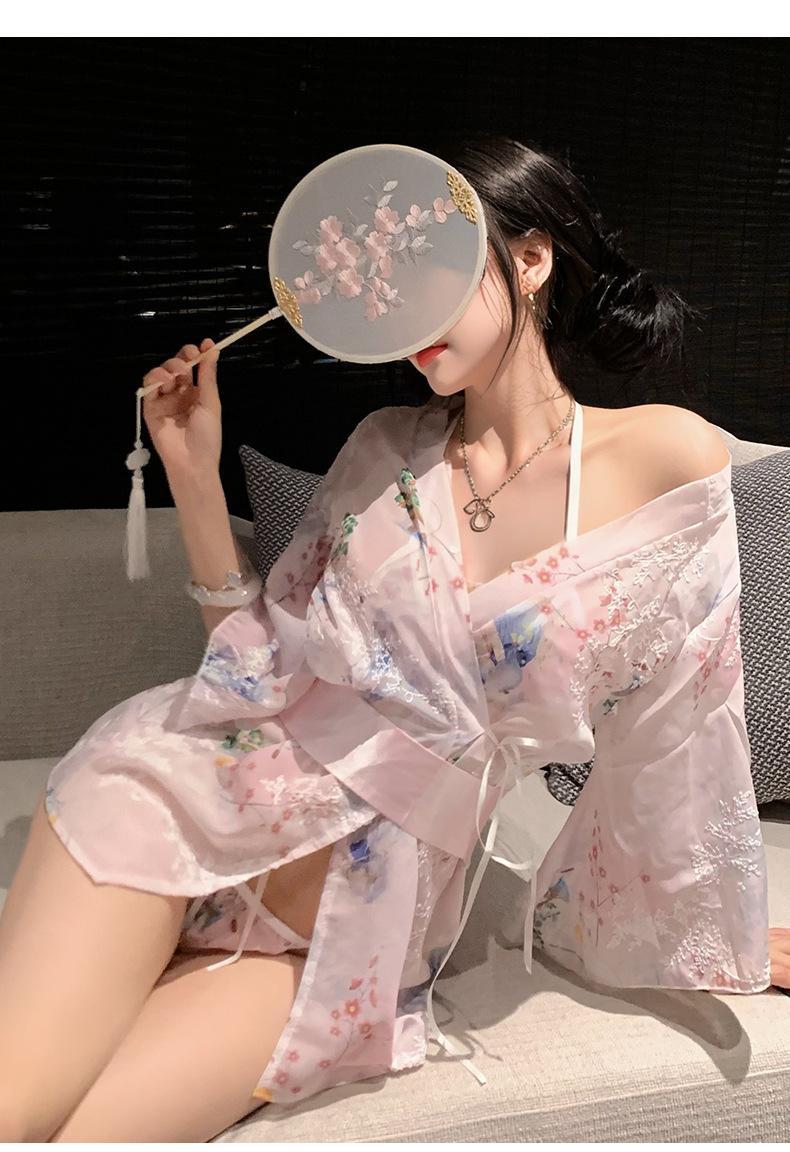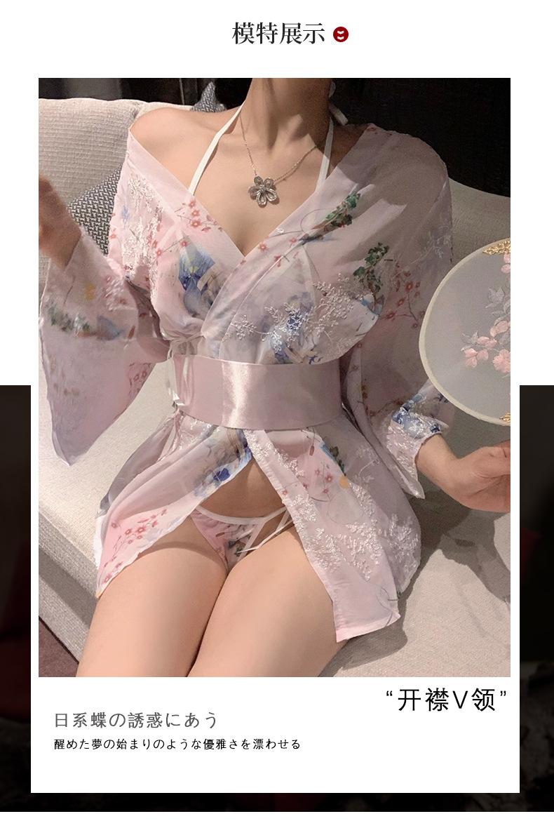 Conjunto de roupão de banho sexy lingerie quimono uniforme tentação estampa estilo japonês laço sexy estilo japonês pijamas tamanho grande