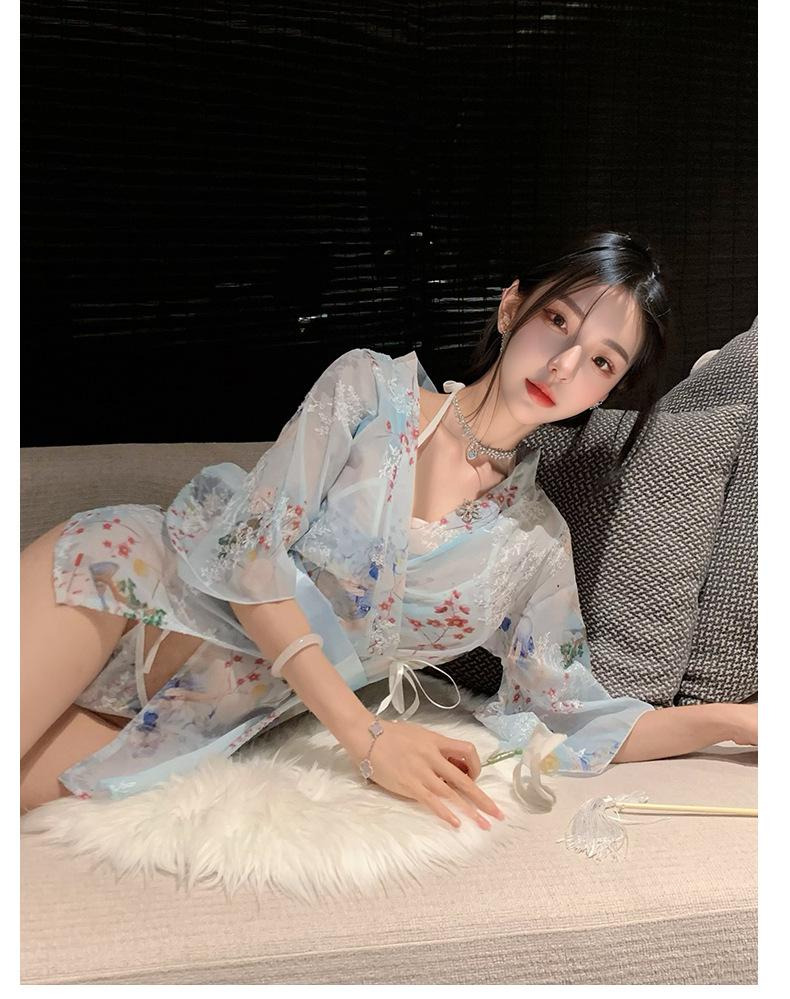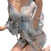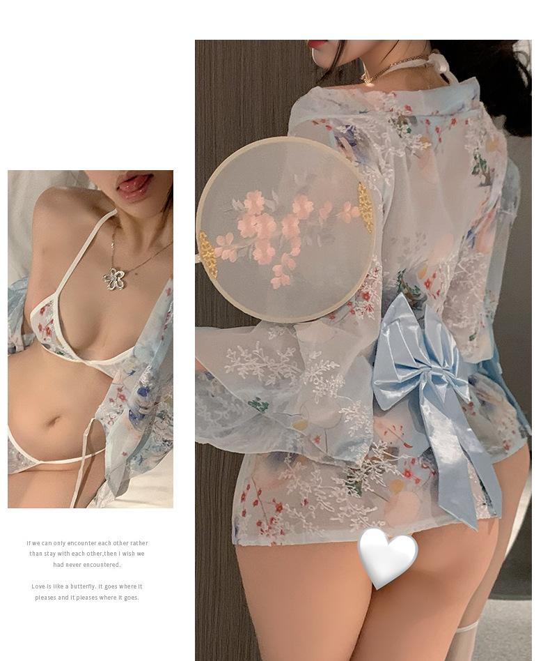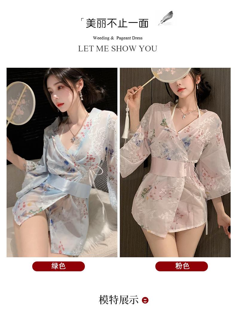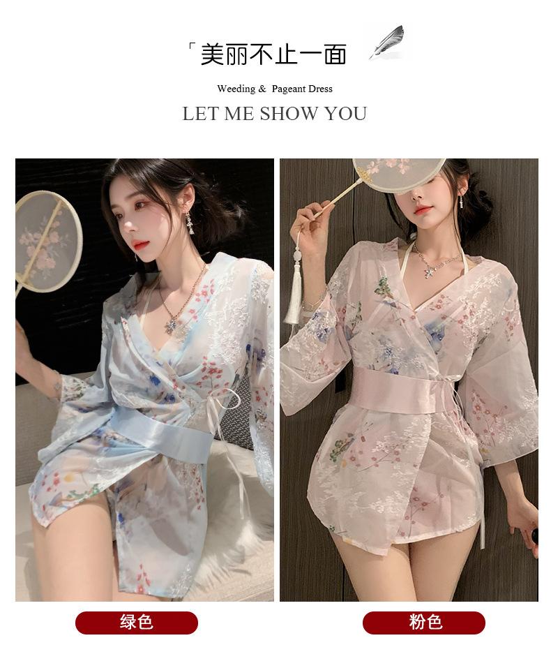 Conjunto de roupão de banho sexy lingerie quimono uniforme tentação estampa estilo japonês laço sexy estilo japonês pijamas tamanho grande