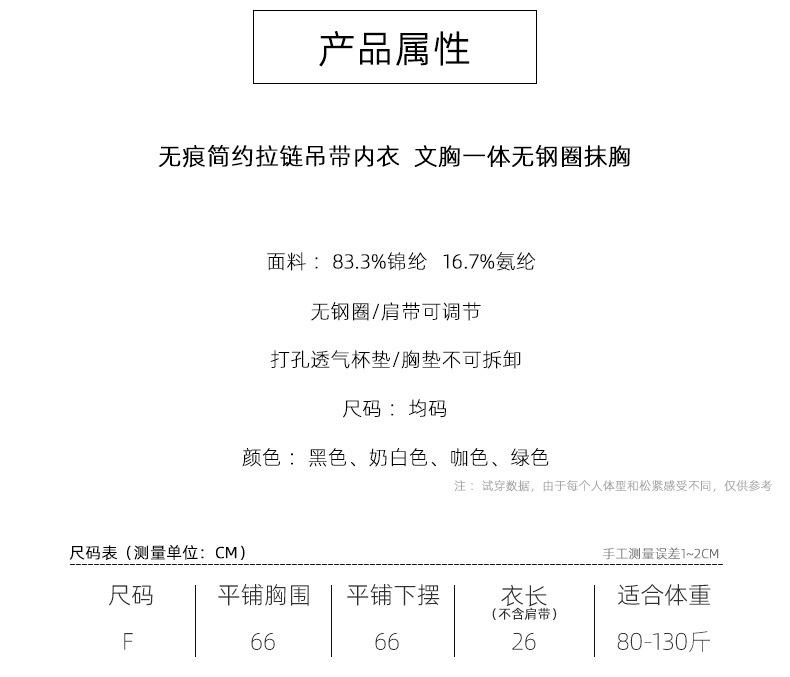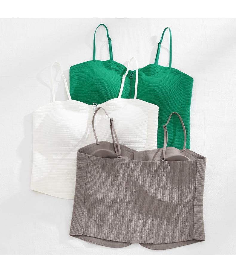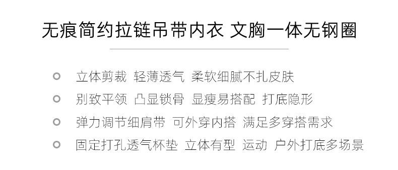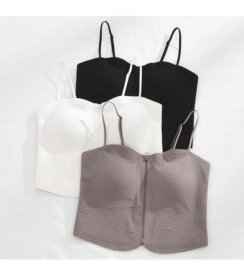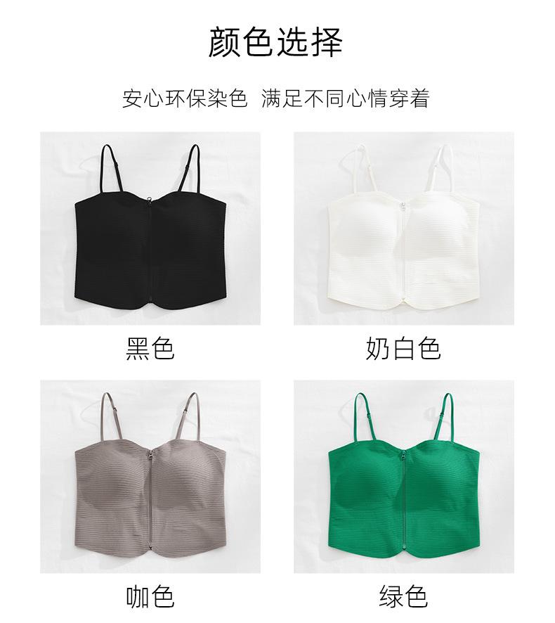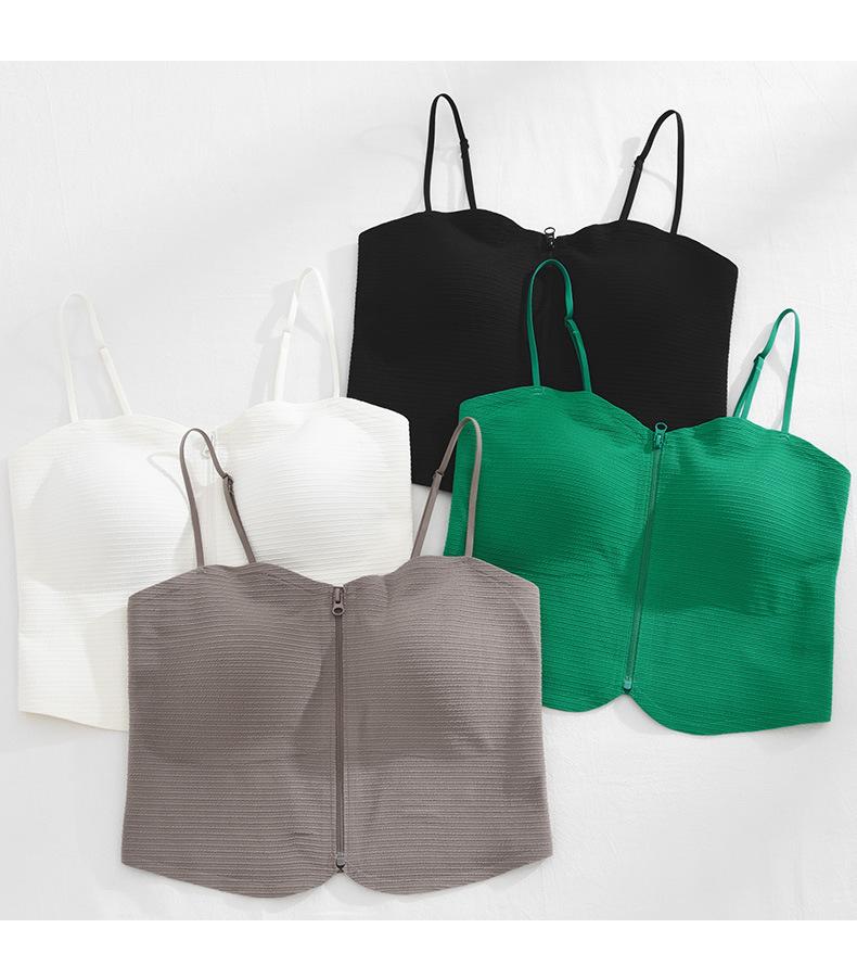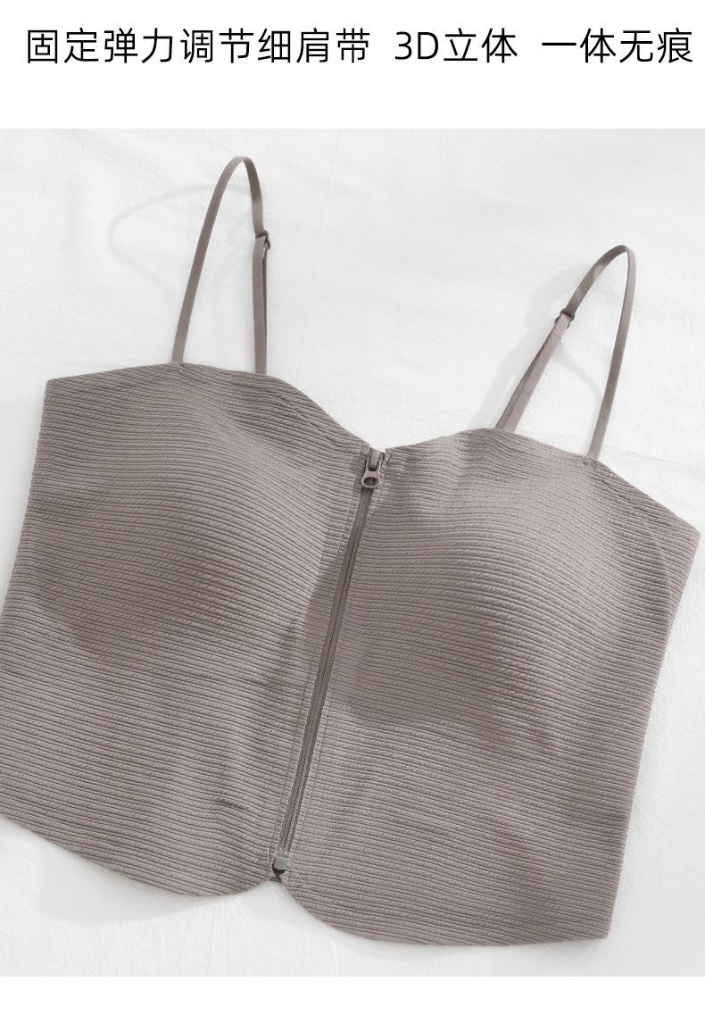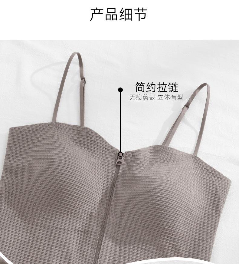 Sutiã feminino de cueca sem costura com zíper simples sem anel de aço cinto integrado almofada no peito dentro e fora da camisola base de desgaste