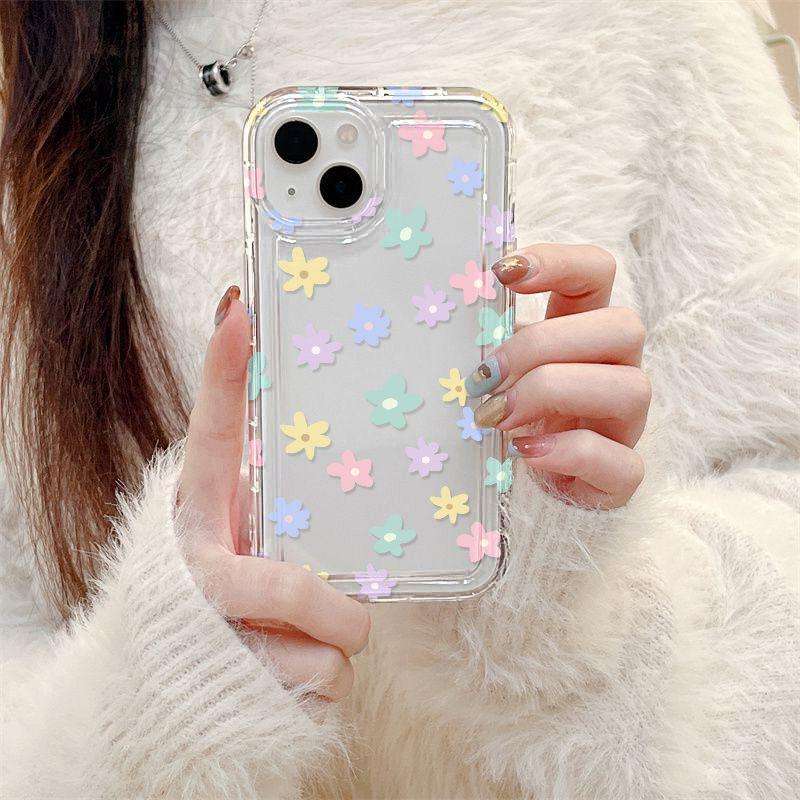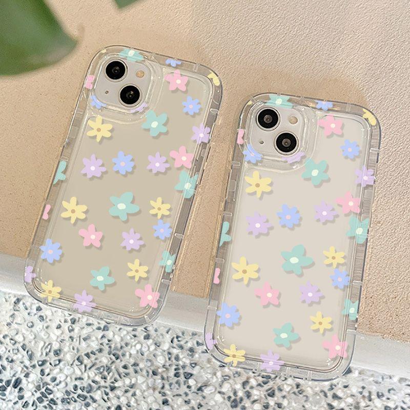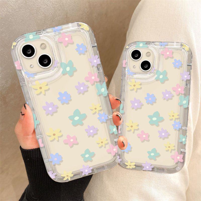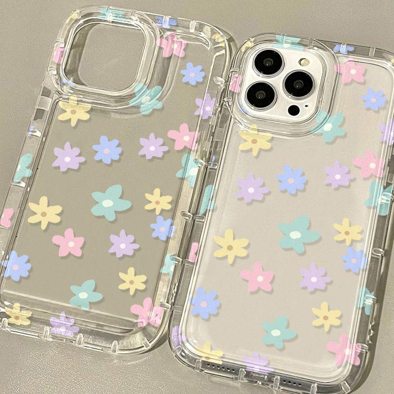 Cor pequenas flores para iphone16promax capa de telefone apple 14 grande buraco 12/13 novo 15 airbag