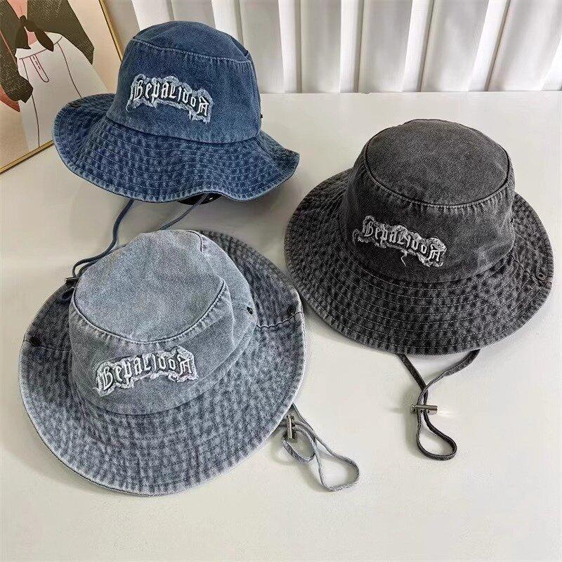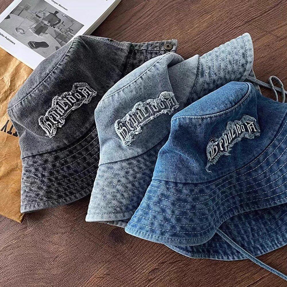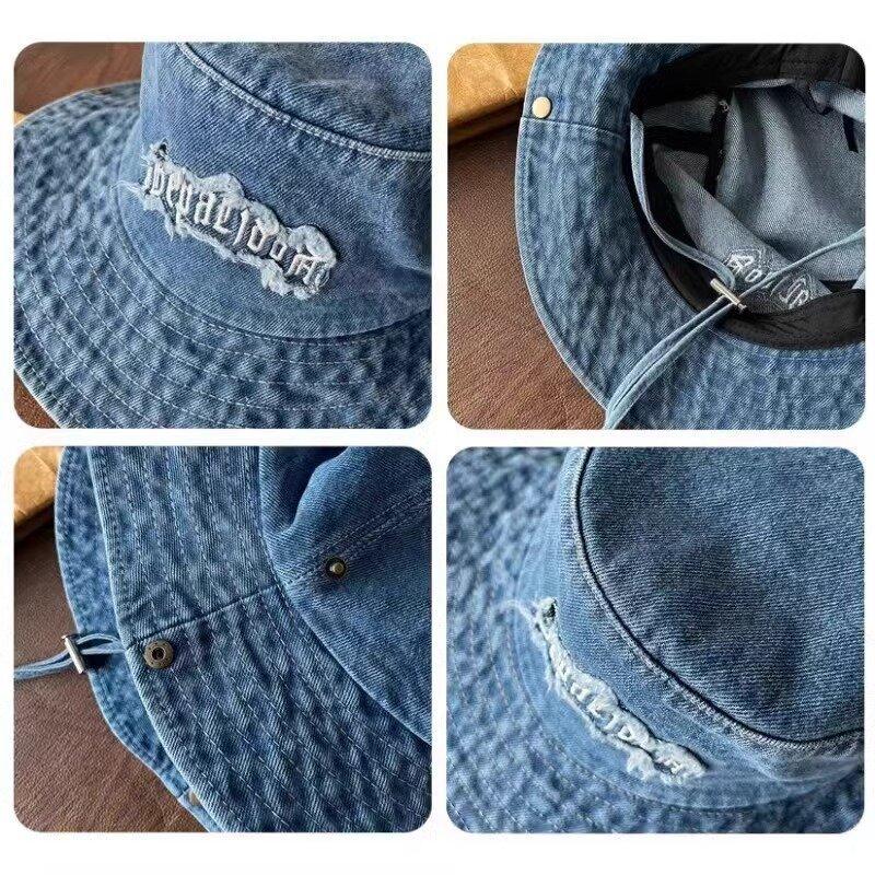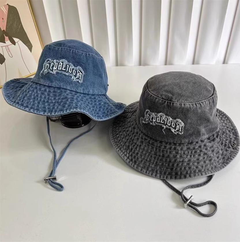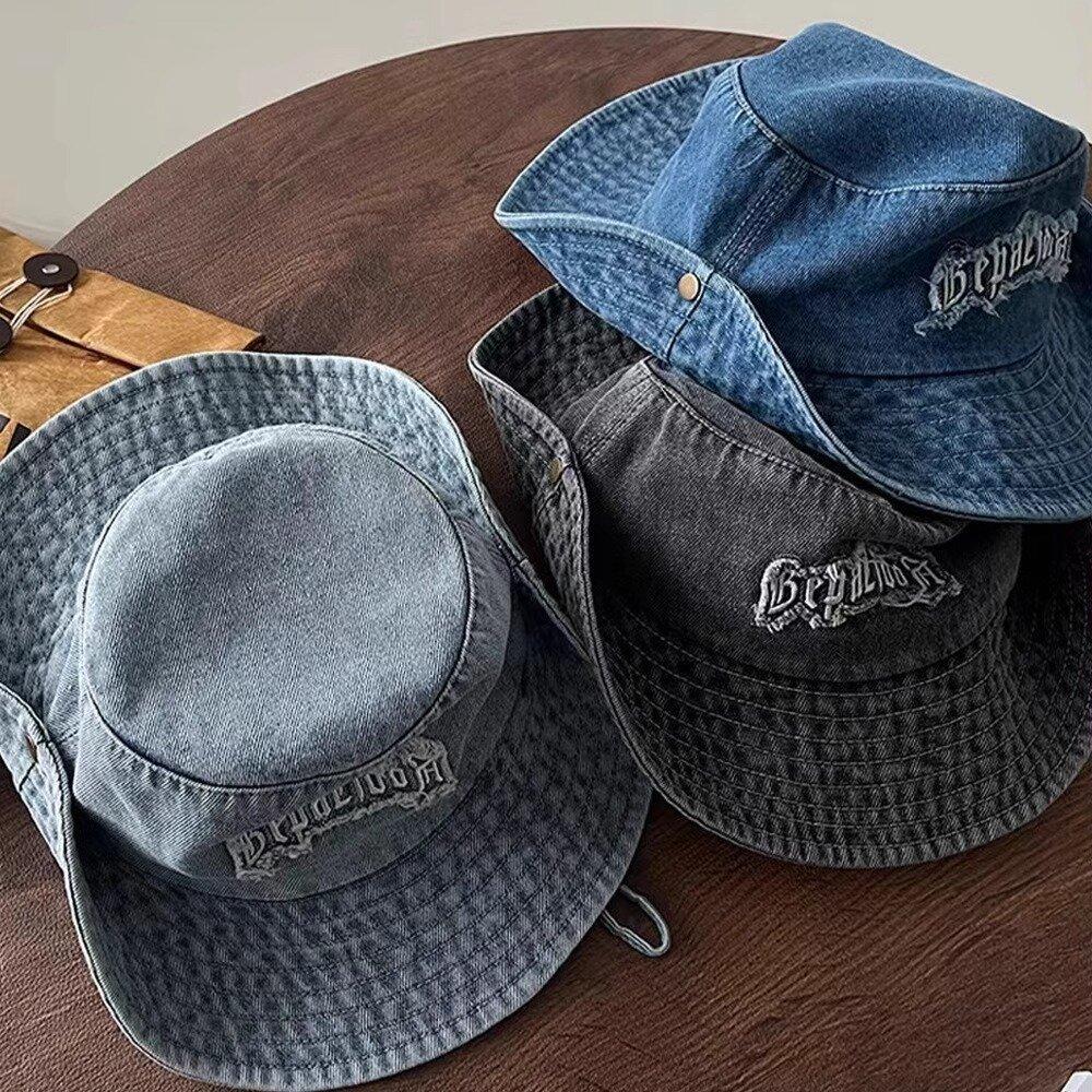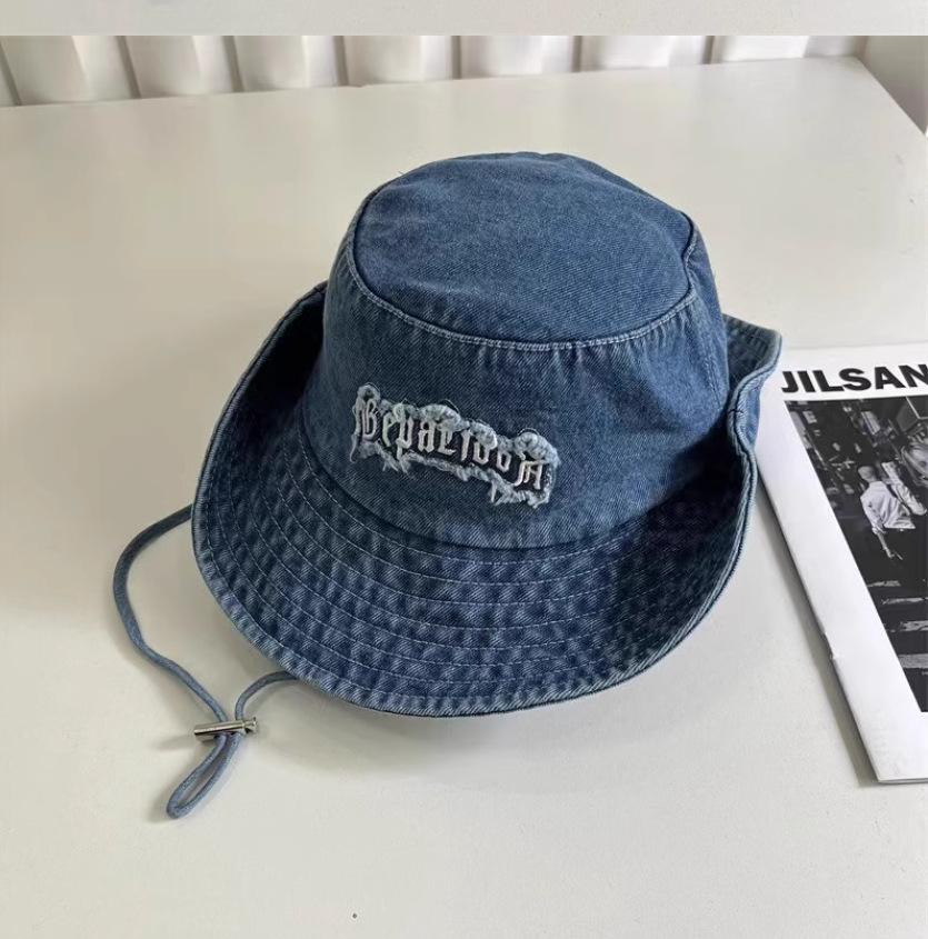 FF Letter Denim Fisherman Hat-Black, FF Letter Denim Fisherman Hat-Blue, FF Letter Denim Fisherman Hat-light blue