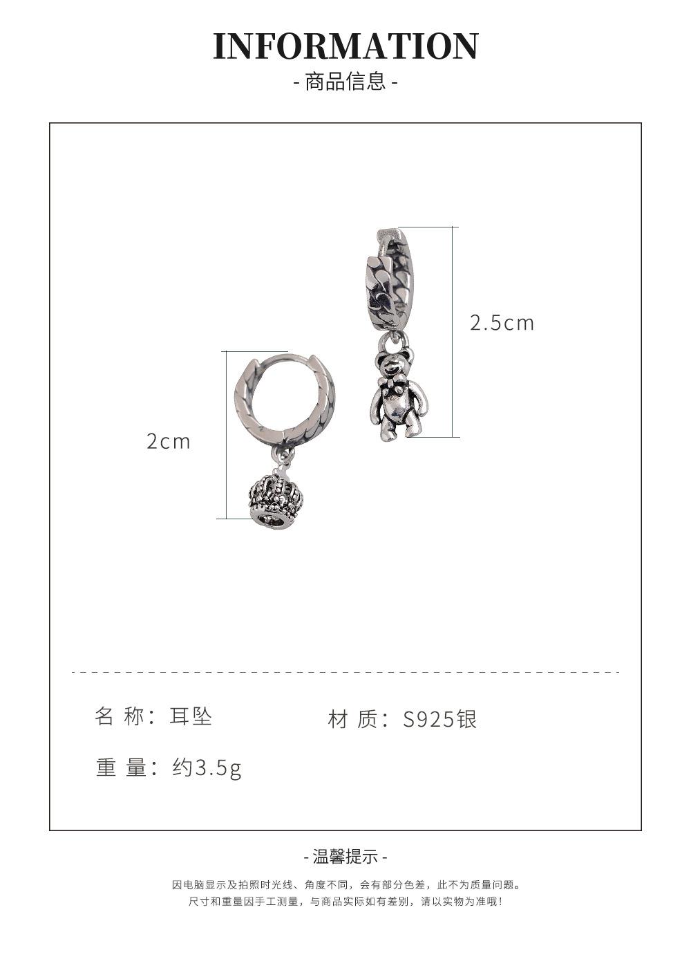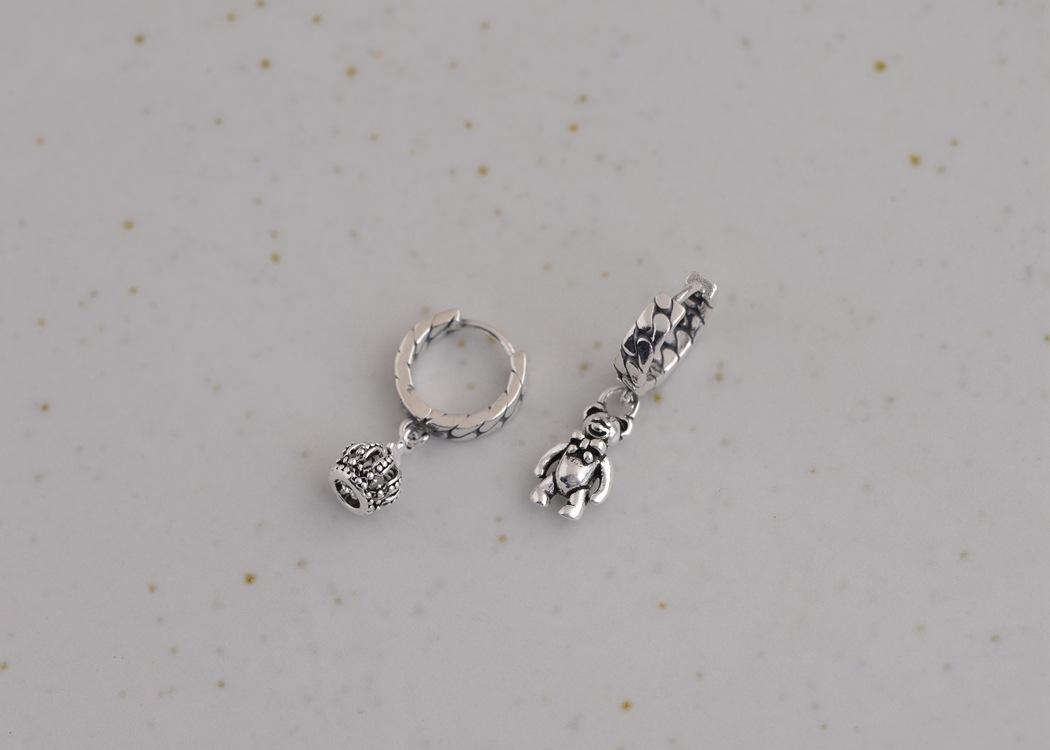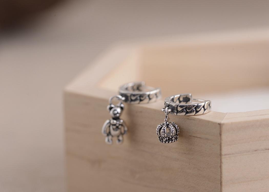 Golden Deer King S925 prata retro moda assimétrica AB brincos atacado feminino literário urso coroa brincos