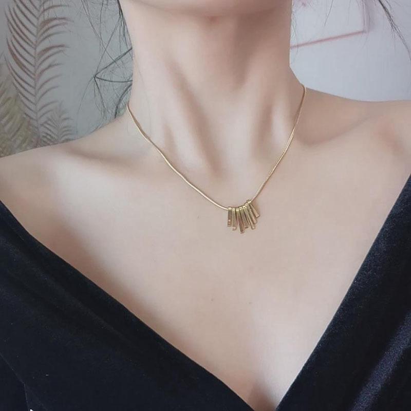 Moda Novo Colar de Aço de Titânio Feminino Explosivo Pequena Faixa Quadrada Corrente de Clavícula Desbotada Design de Nicho de Luxo Leve de Alta Qualidade