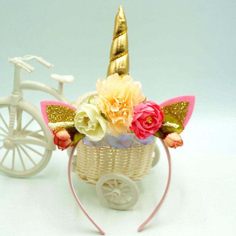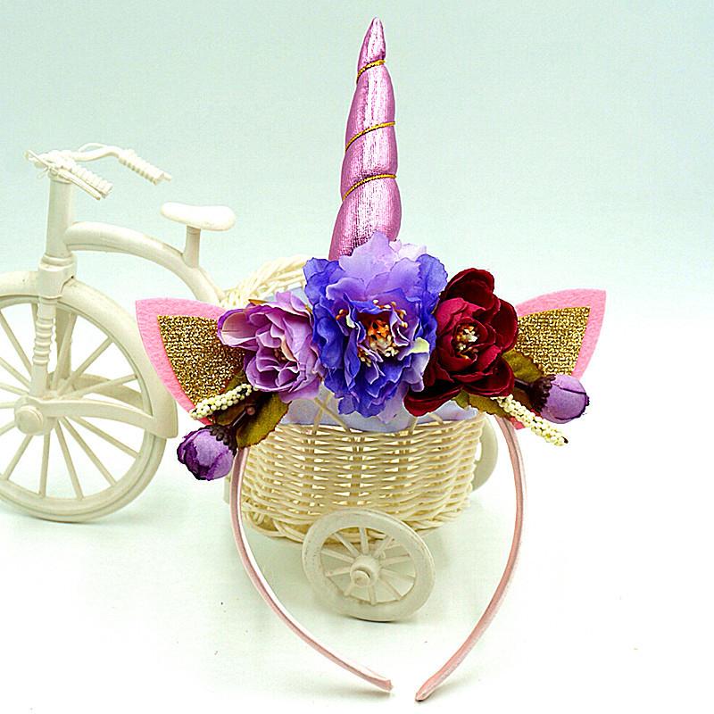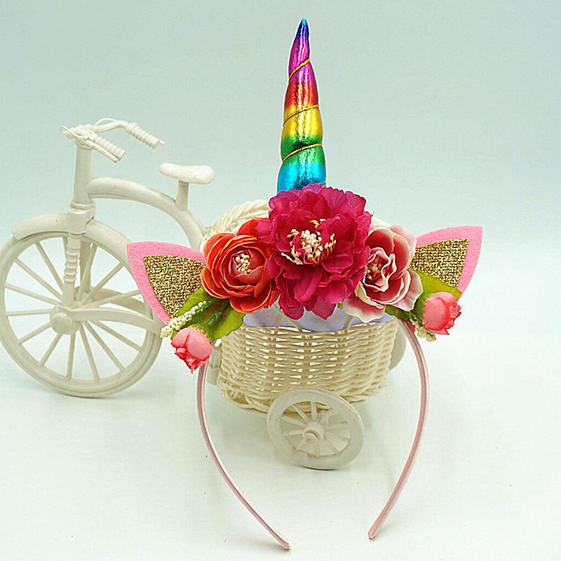Nosso novo estilo, simulado flor Halloween unicórnio headband. Altura: 27 cm, largura 17 cm, peso: 32 gramas
