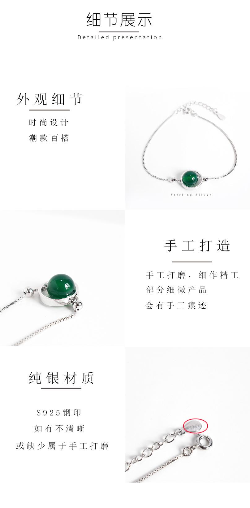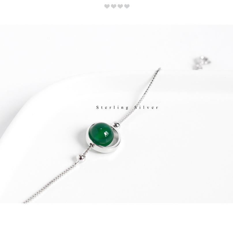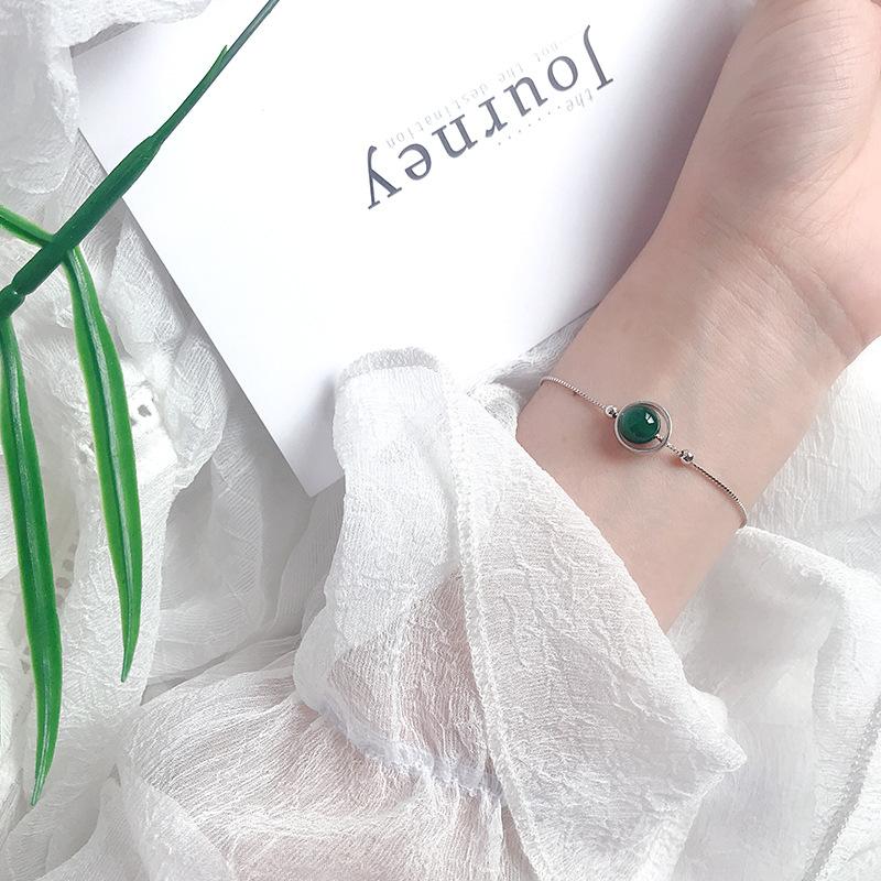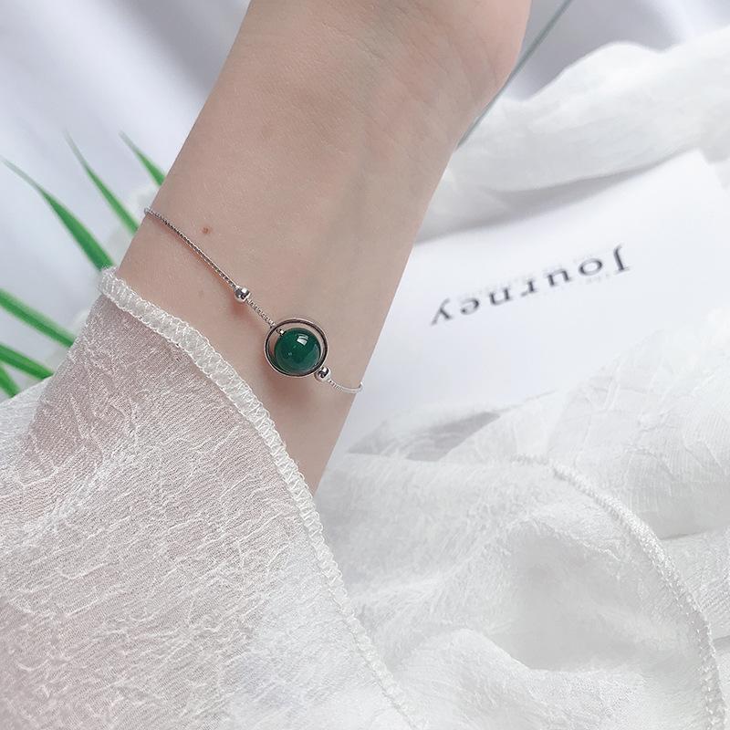 Compre Pulseira de prata esterlina S925, pulseira de ágata verde, joia chique, temperamento minimalista, pulseira de cristal feminina, joia da moda no atacado no Joom.pro