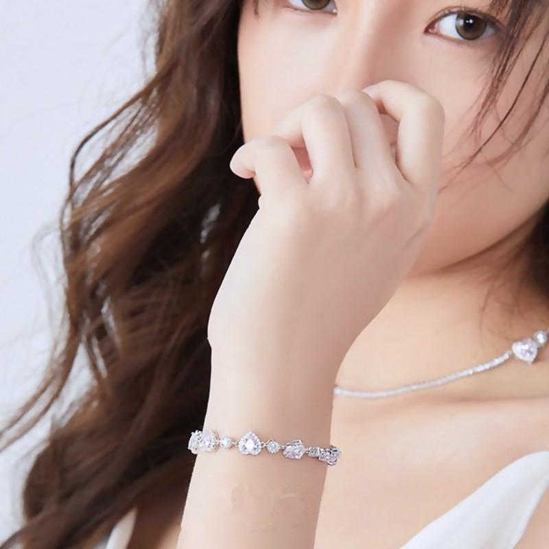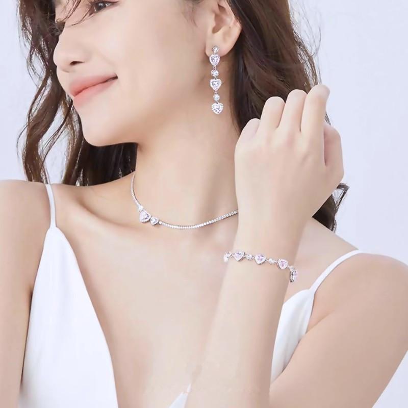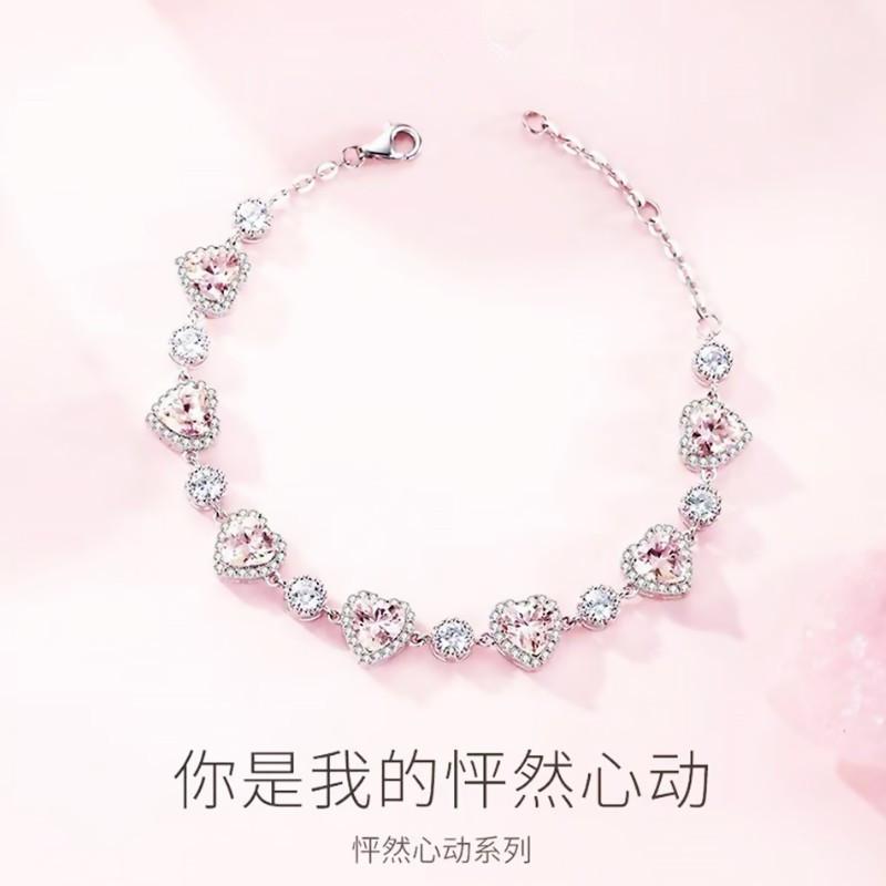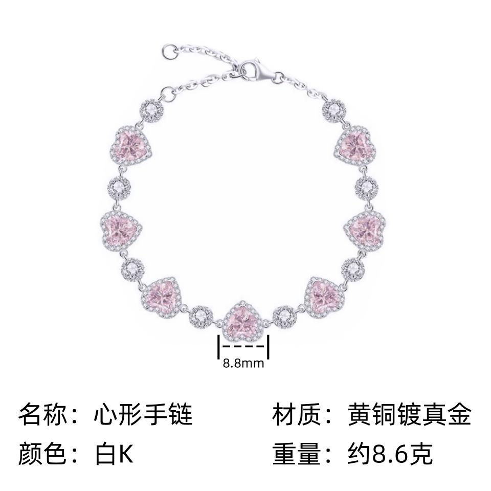 Pulseira de diamante rosa em forma de coração design de nicho de luxo leve para mulheres pulseira de amor de zircônia com diamante completo de alta qualidade atacado
