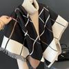 Cachecol quente xadrez tipo caxemira feminina borla de inverno xale de uso duplo para todos os jogos retrô engrossado cor de contraste cachecol xadrez