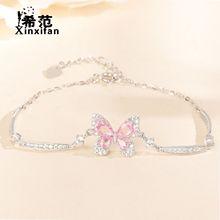 Pulseira de borboleta rosa puro s925 para mulheres com diamantes pulseira de moda romântica de alta qualidade estilo temperamento de luxo leve presente
