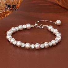 Pulseira de prata esterlina s925 manta pérola rosa, miçangas, nicho sofisticado, novo estilo chinês, bola de cristal Shamballa com strass