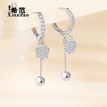 Brincos de prata esterlina s925 com contas redondas de lírio-do-vale e brincos cravejados de diamantes para mulheres, design de nicho, borla longa, faz o rosto parecer mais fino e adiciona ao temperamento