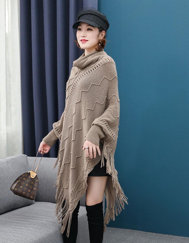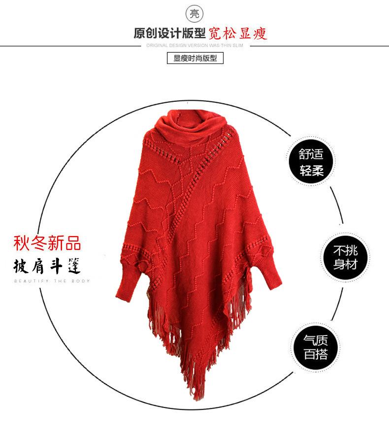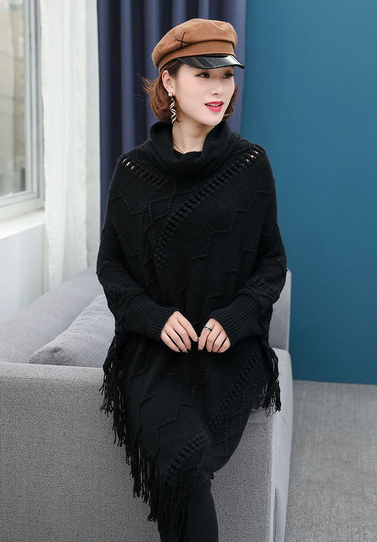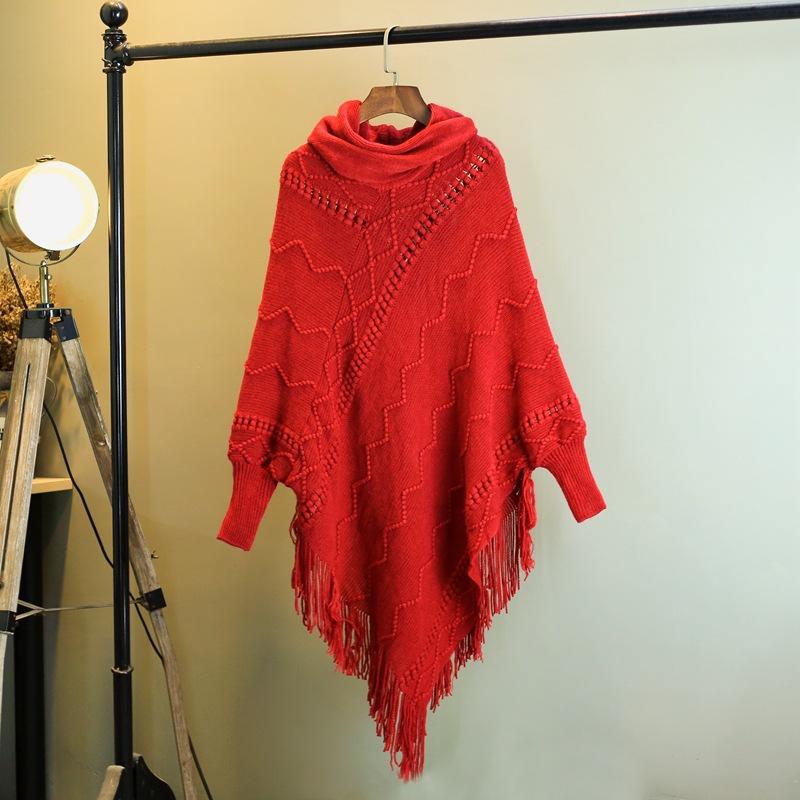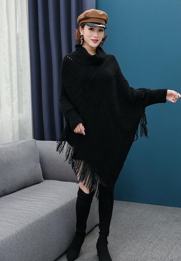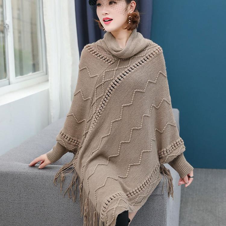 Outono e inverno Nova borla camisola xale direto da fábrica gola alta pilha gola morcego manga morcego pulôver Cabo Mulheres
