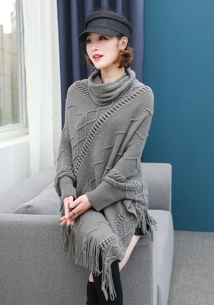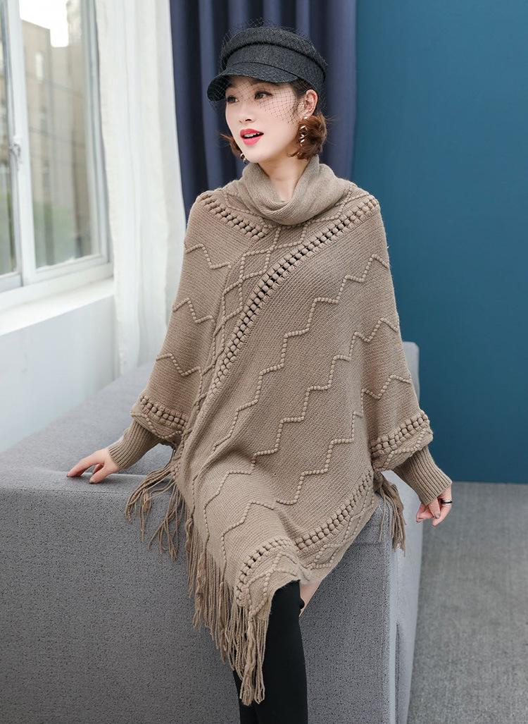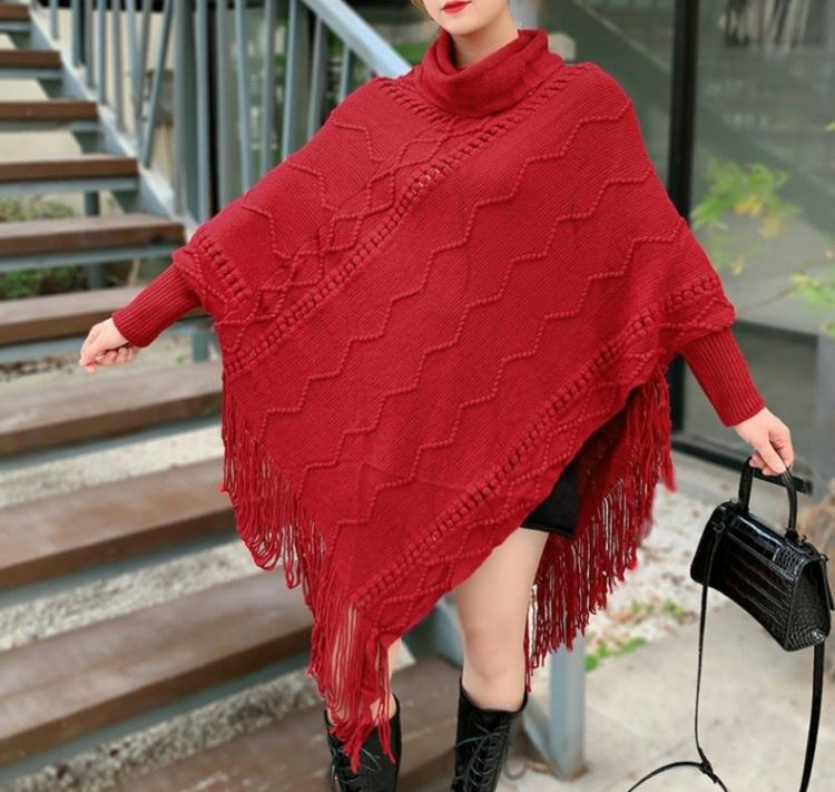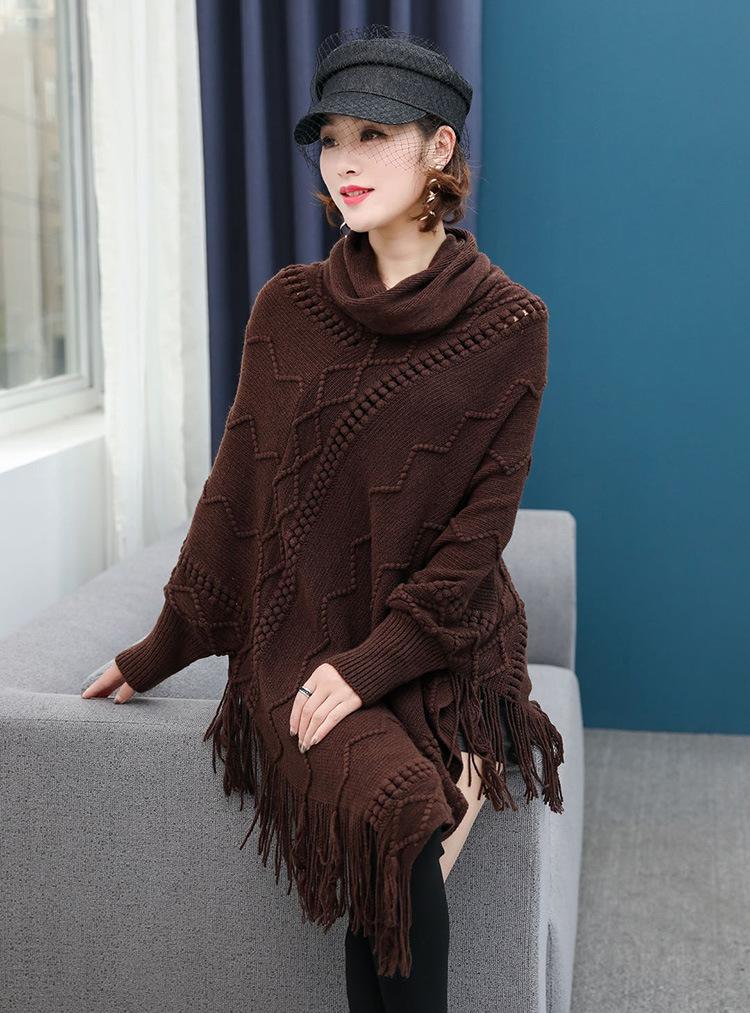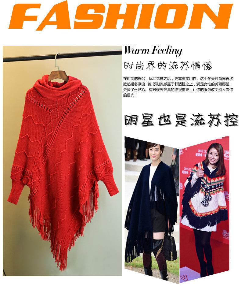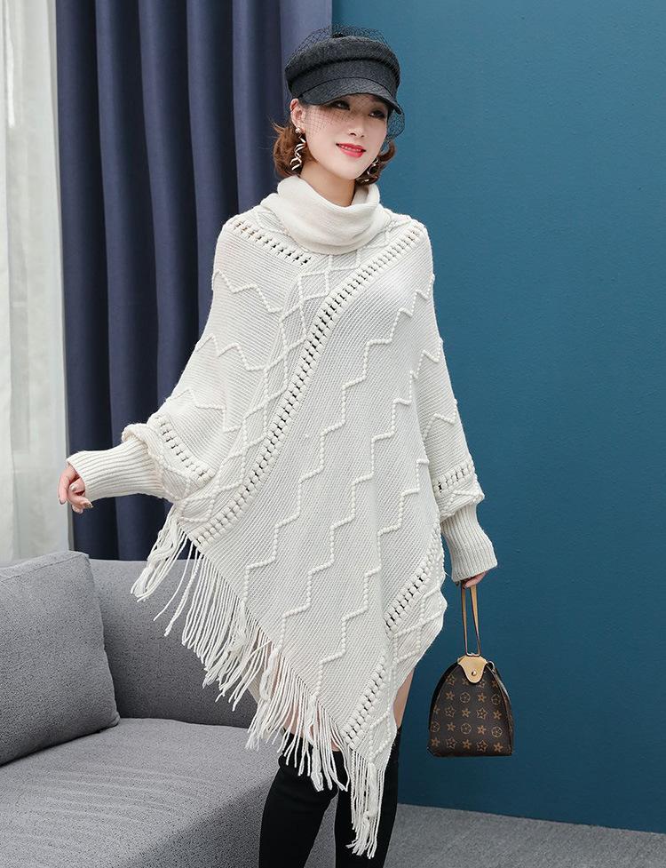 Outono e inverno Nova borla camisola xale direto da fábrica gola alta pilha gola morcego manga morcego pulôver Cabo Mulheres