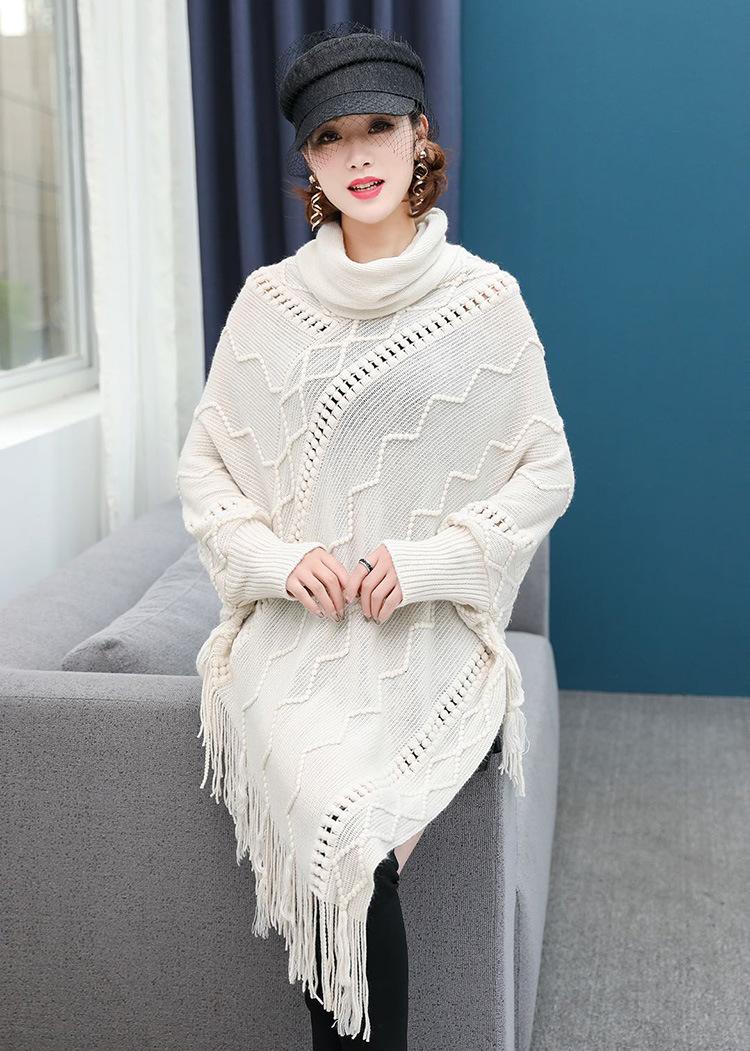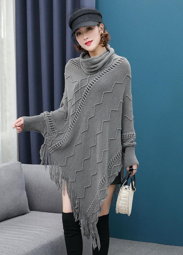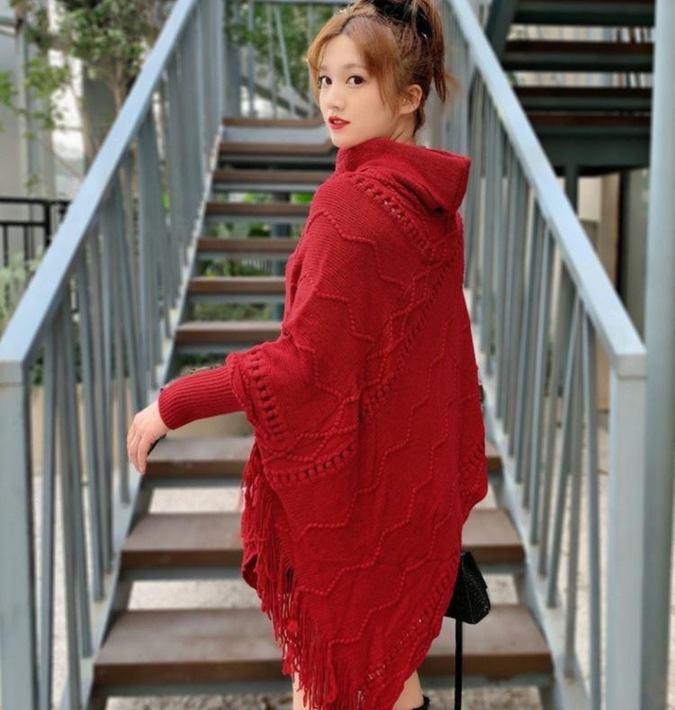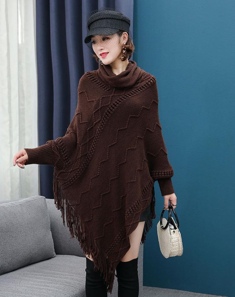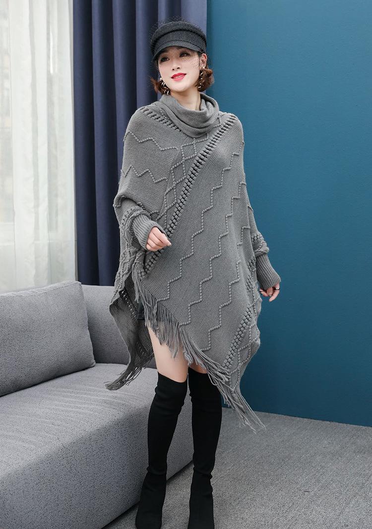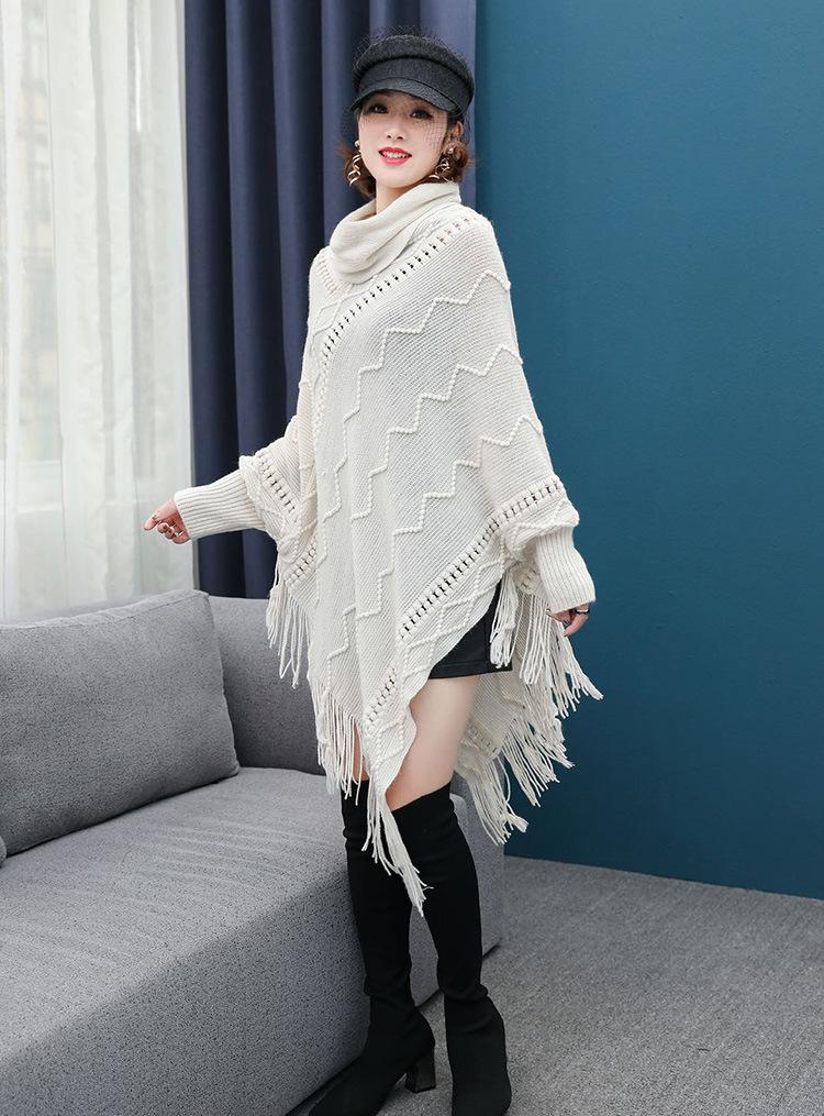 Outono e inverno Nova borla camisola xale direto da fábrica gola alta pilha gola morcego manga morcego pulôver Cabo Mulheres