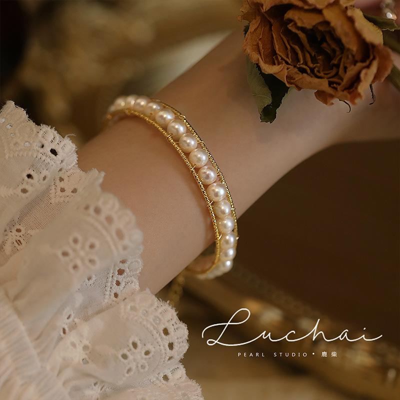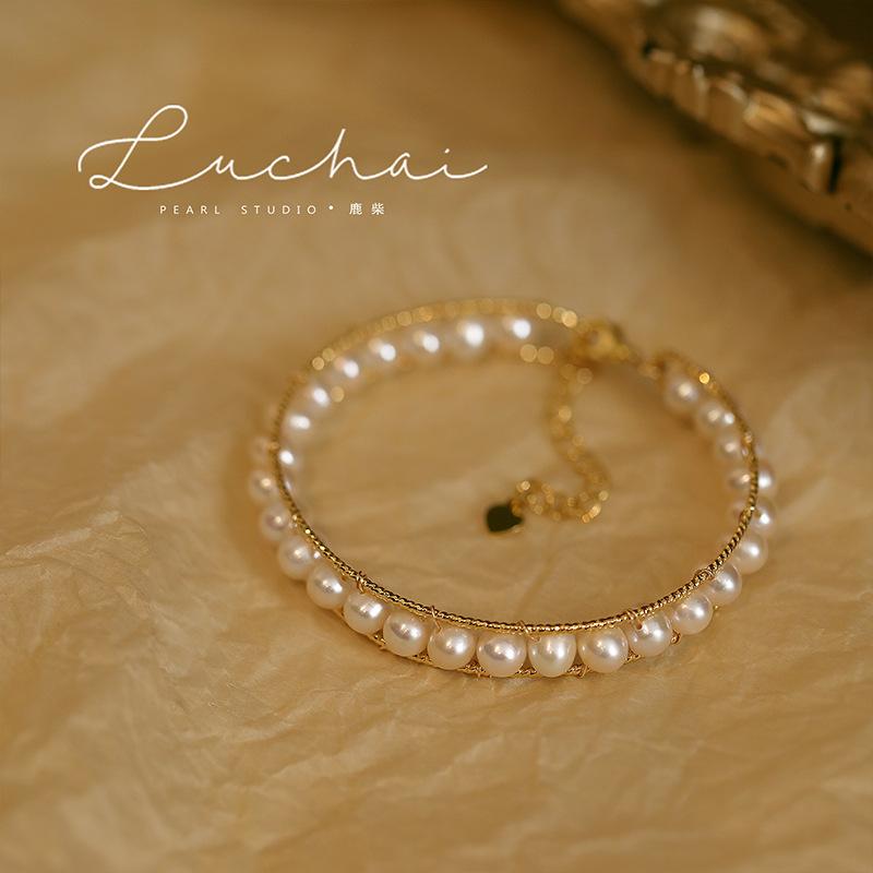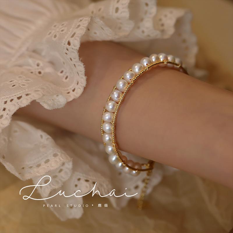 Pulseira de pérola de água doce design de nicho pulseira pulseira para meninas ins estilo retrô de luxo leve pulseira avançada pulseira