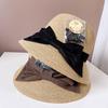 Chapéu de palha de correspondência de cores tecido à mão para o verão infantil estilo japonês simples casual com cordões chapéu de pescador para passeio chapéu de praia de guarda-sol