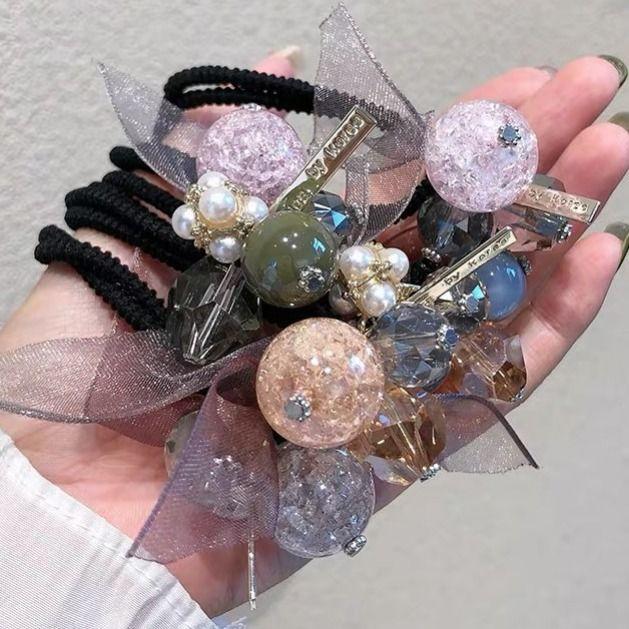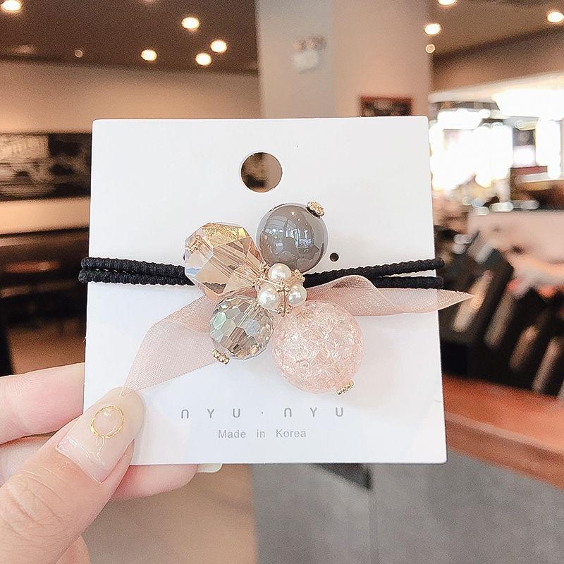 Versão coreana da corda de cabelo elástico corda de cabelo simples cristal anel de cabelo bola cocar acessórios de cabelo estudantes do sexo feminino adulto estojo de couro
