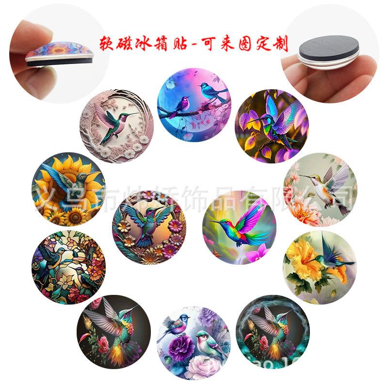 Fabricantes de suprimentos transfronteiriços atacado cor beija-flor DIY tempo gem remendo de vidro macio geladeira magnética atacado