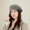 Boina de Lã Chapéu de Lã para Mulheres Outono e Inverno Coreano Japonês Pintor Chapéu Preto Britânico Vintage Cabeça Grande