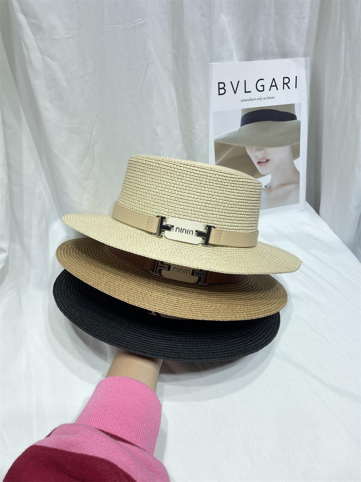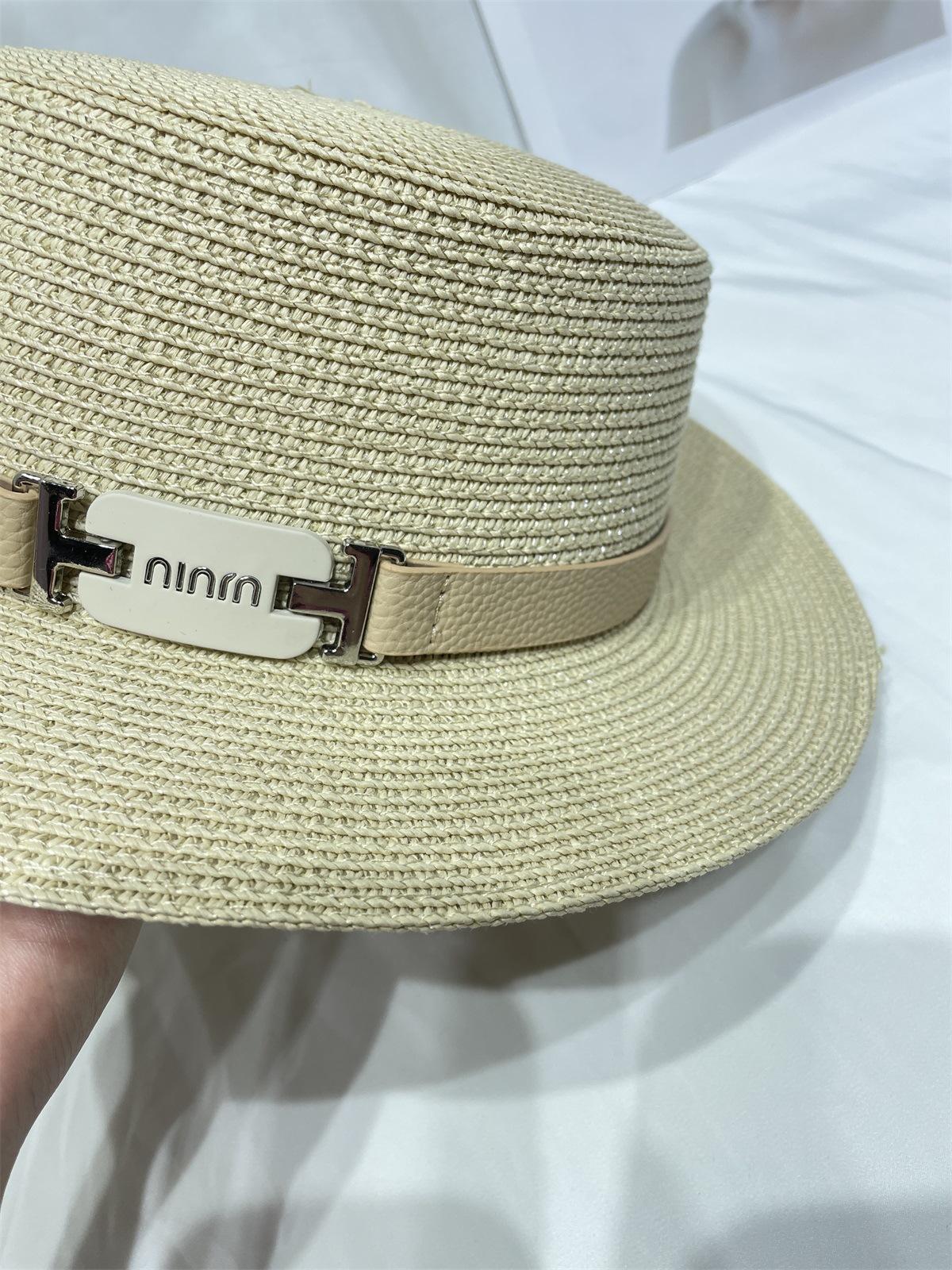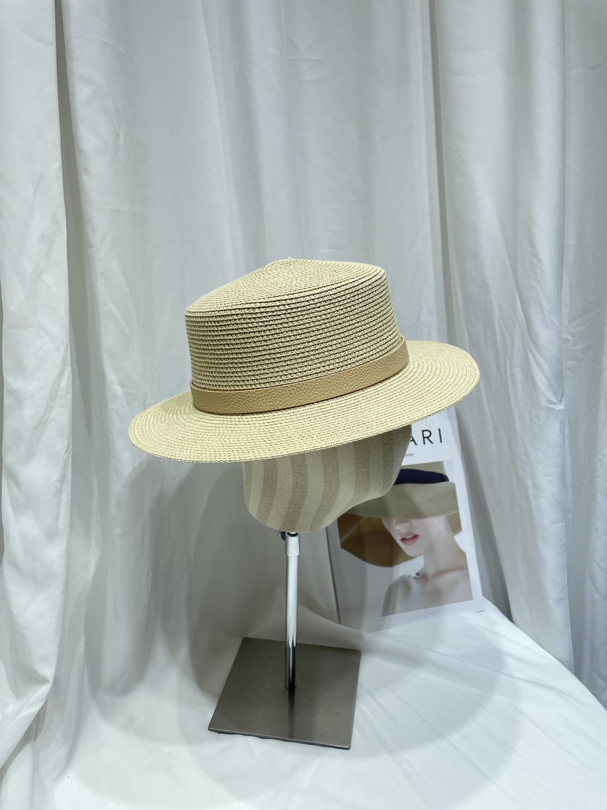 Chapéu de palha protetor solar feminino verão praia férias guarda-sol chapéu de sol estilo coreano britânico retro chapéu de topo plano moderno