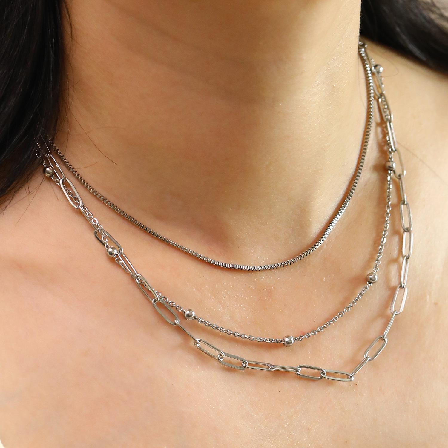 INS Personalidade de Aço Titânio de Alta Qualidade Colar de Três Camadas Tendência Pingente Acessórios Design de Nicho Camisola Cadeia de Vendas Diretas