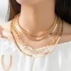 Colar europeu e americano transfronteiriço, corrente de osso de cobra dourada, liga redonda, moeda, olho, colar multicamadas, joias femininas 17520