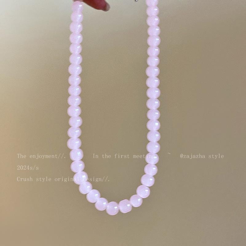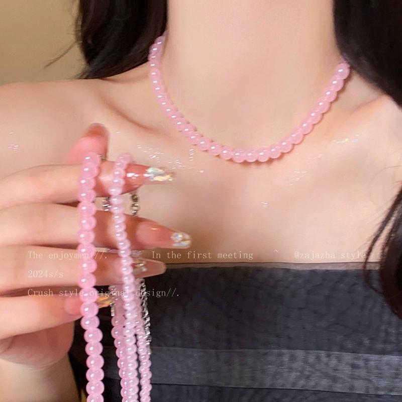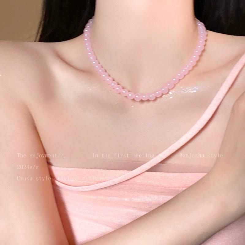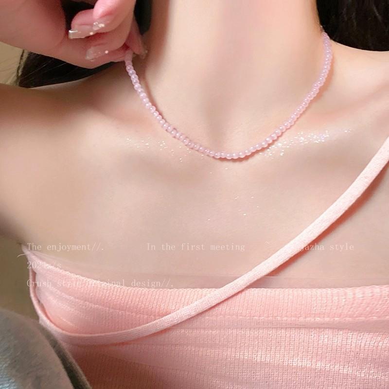 Colar de pérolas rosa de flor de cerejeira natural francesa, novo colar de corrente de clavícula empilhável de alta qualidade, moda de início de primavera