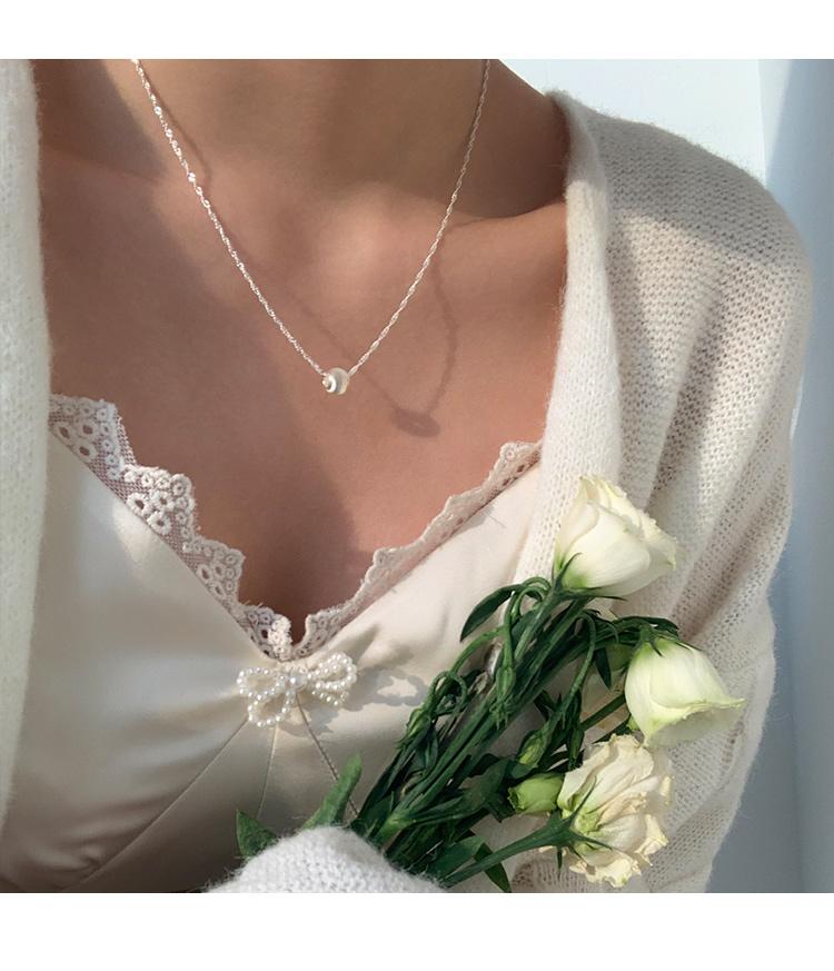 Colar de Prata de Lei S925 Qianjia Colar de Contas de Prata Brilhante para Mulheres Corrente para Clavícula Versátil Elegante Colar de Alto Nível