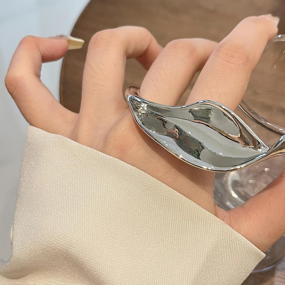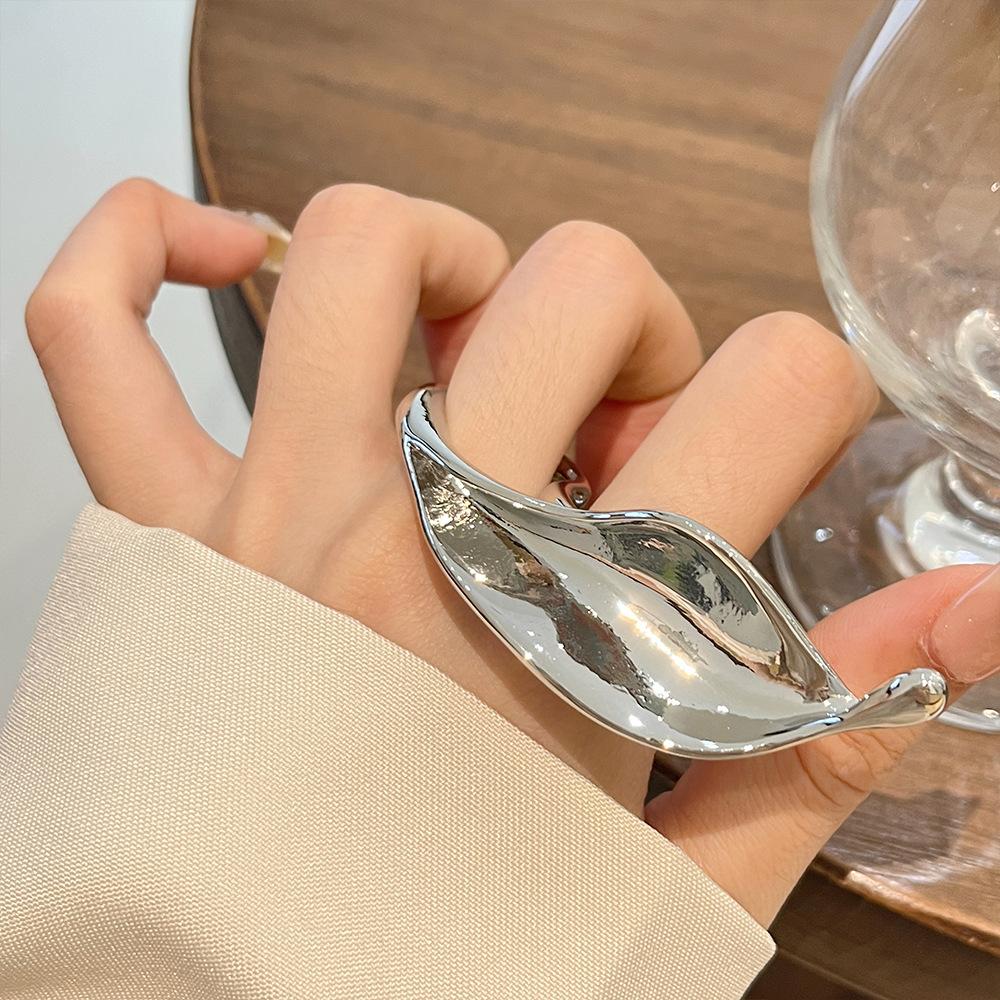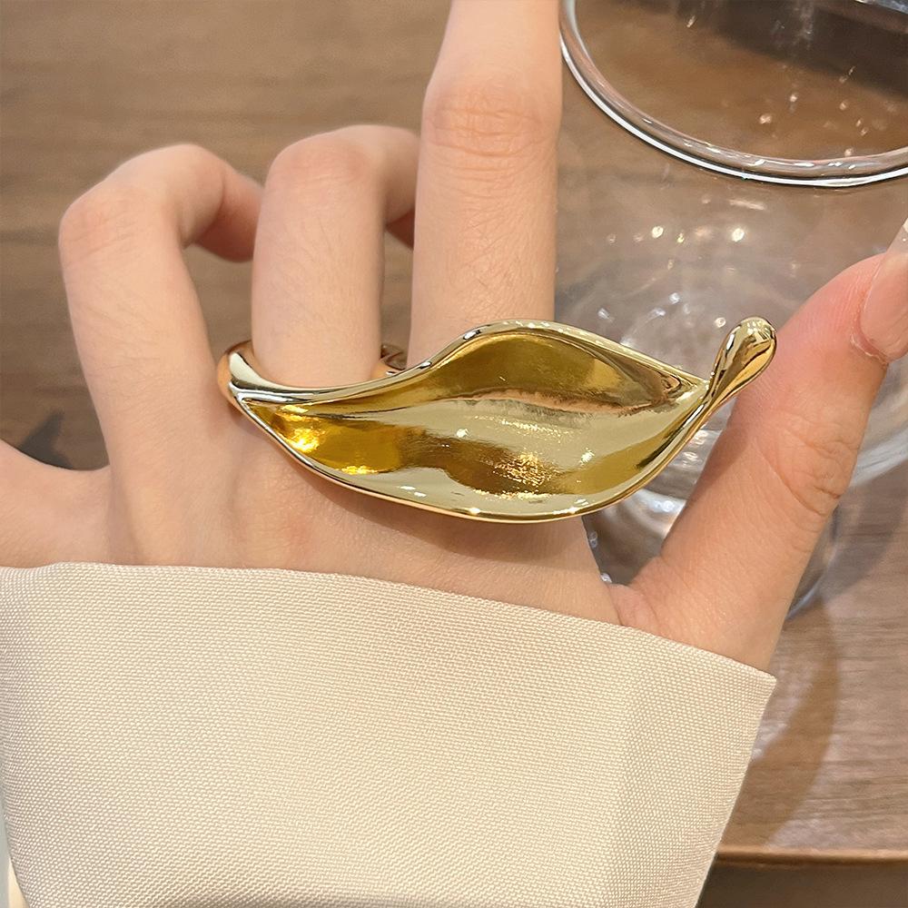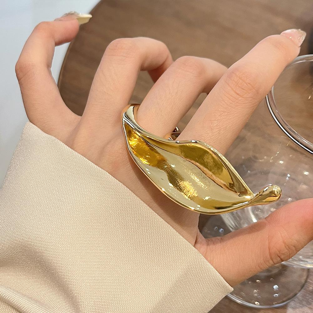 Anel Europeu e Americano Exagerado em Forma de Folha Feminino Nicho Rosto Brilhante Fosco Metálico Anel de Dedo Novo Estilo Anel de Dedo Aberto