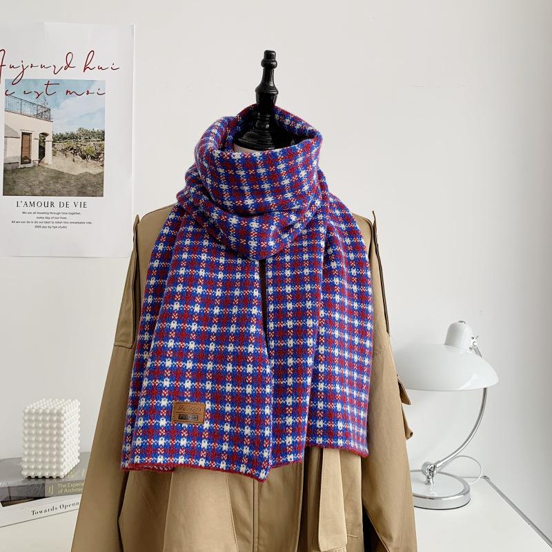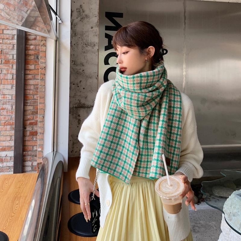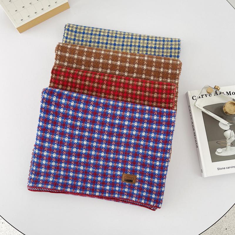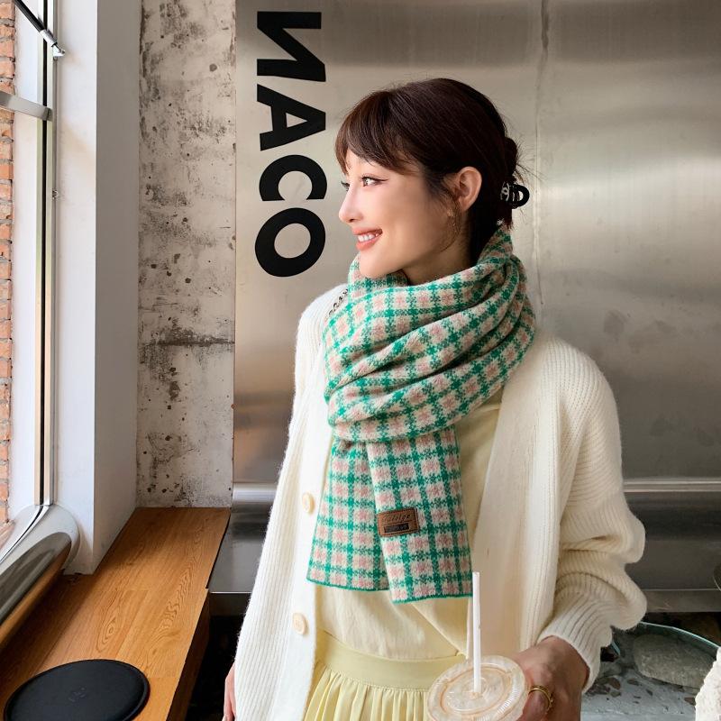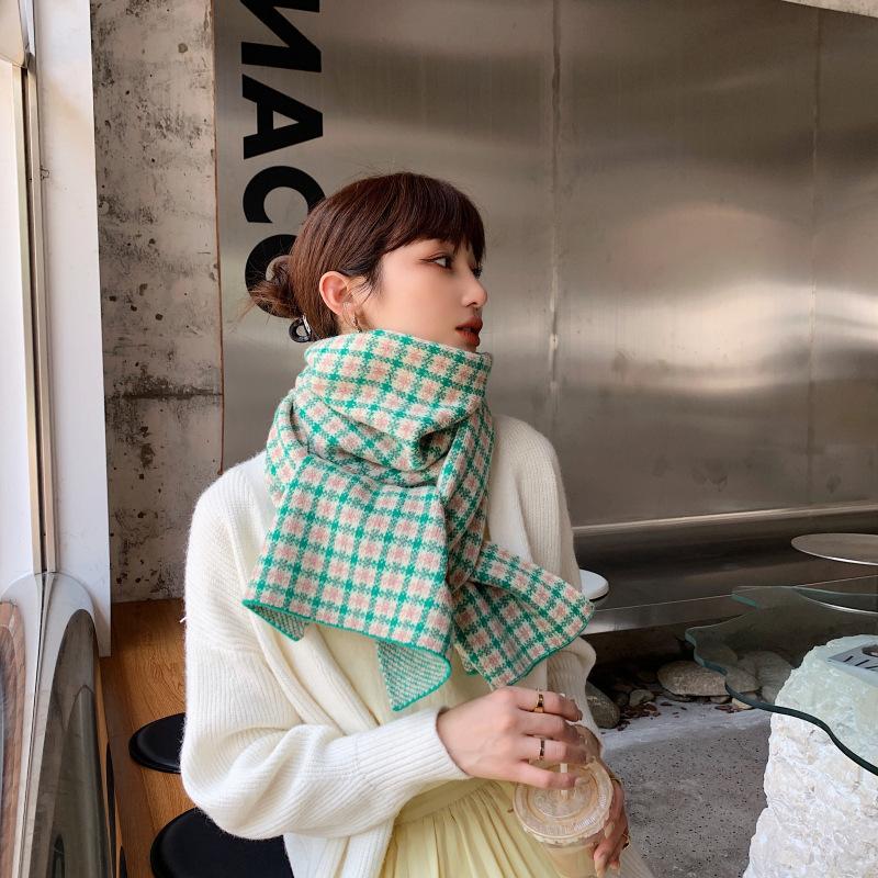 Novo Estilo de Malha de Lã Quente Engrossado Estudante Lenço Xadrez Plana de Malha