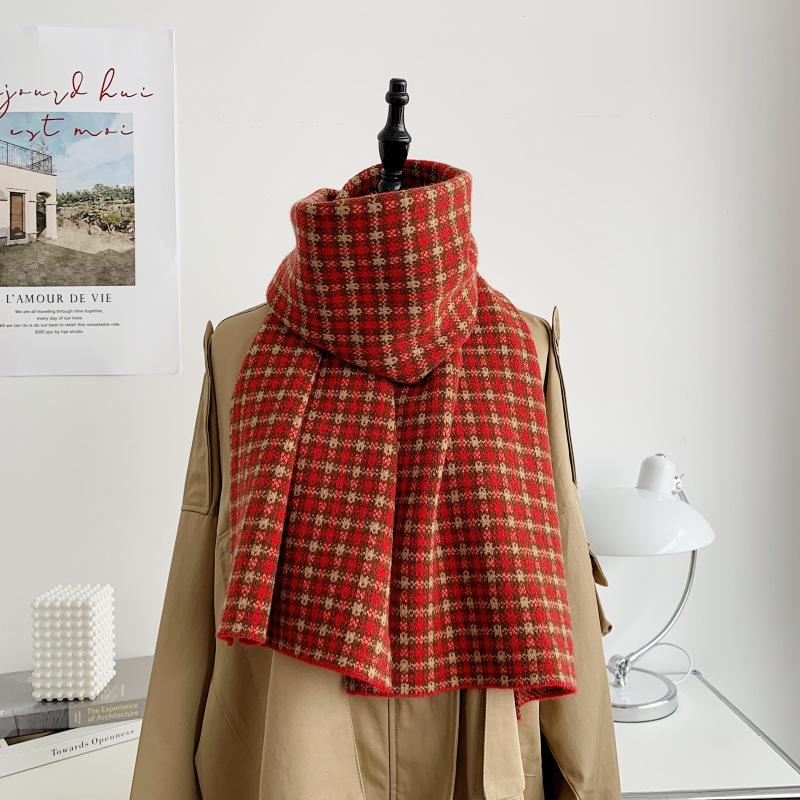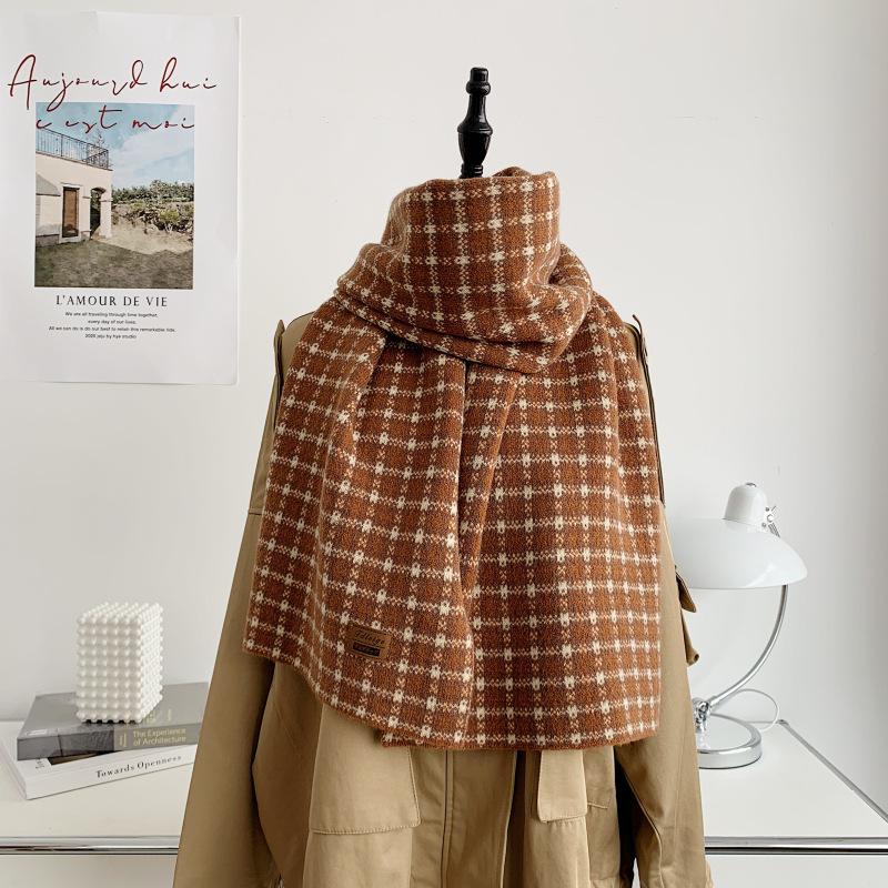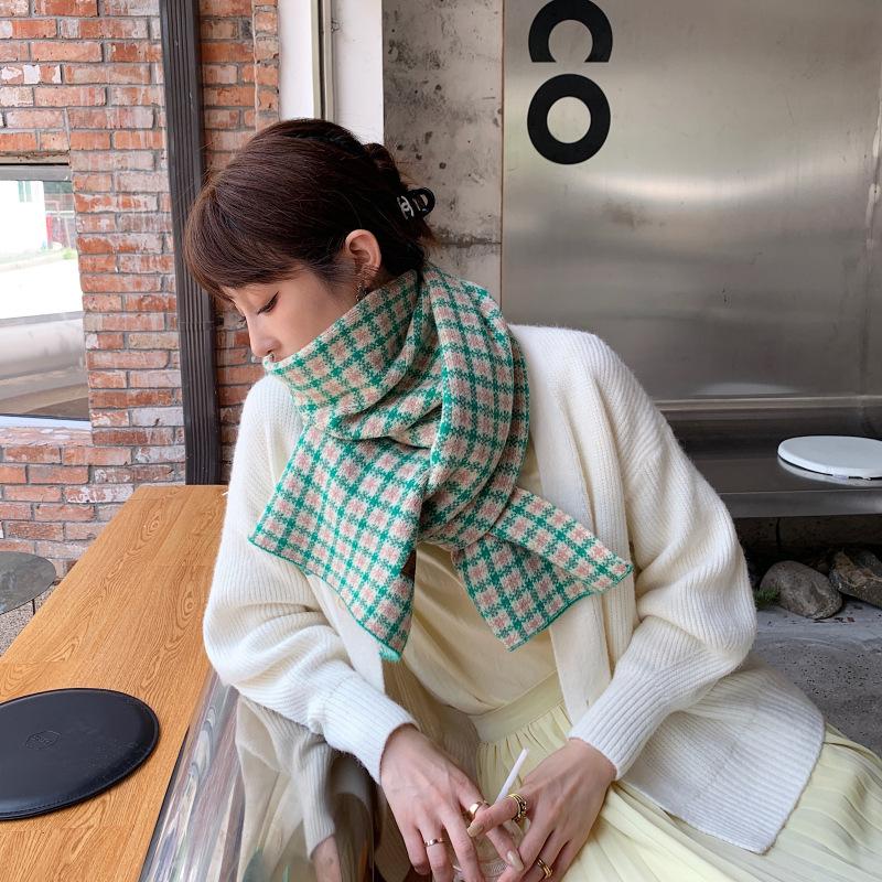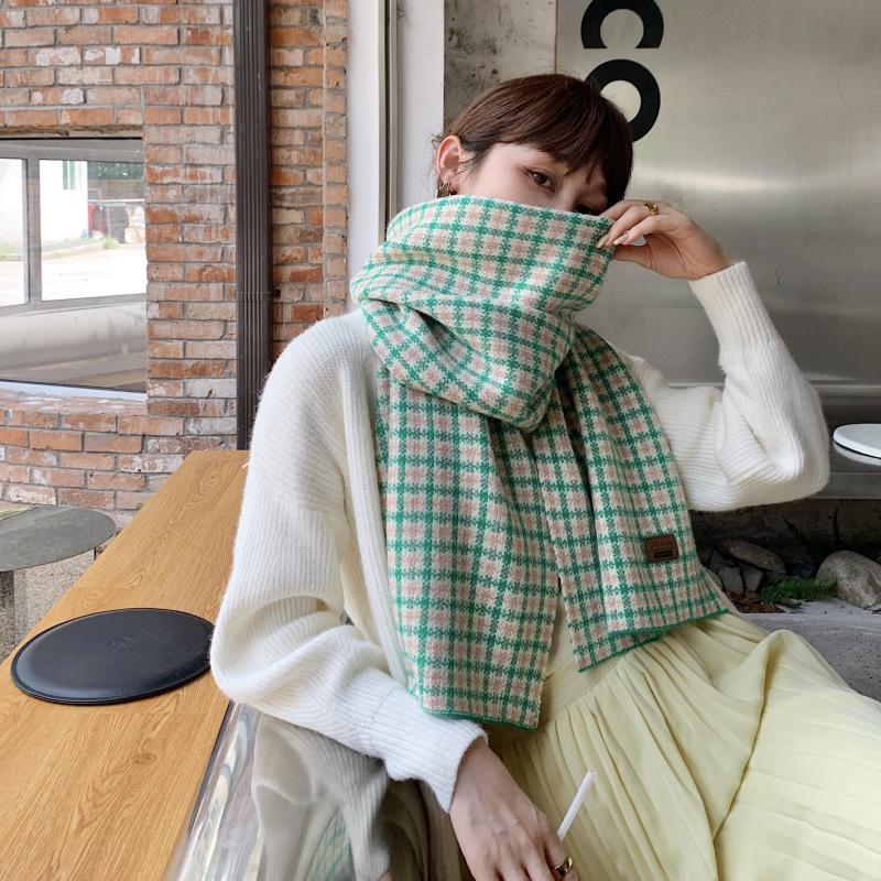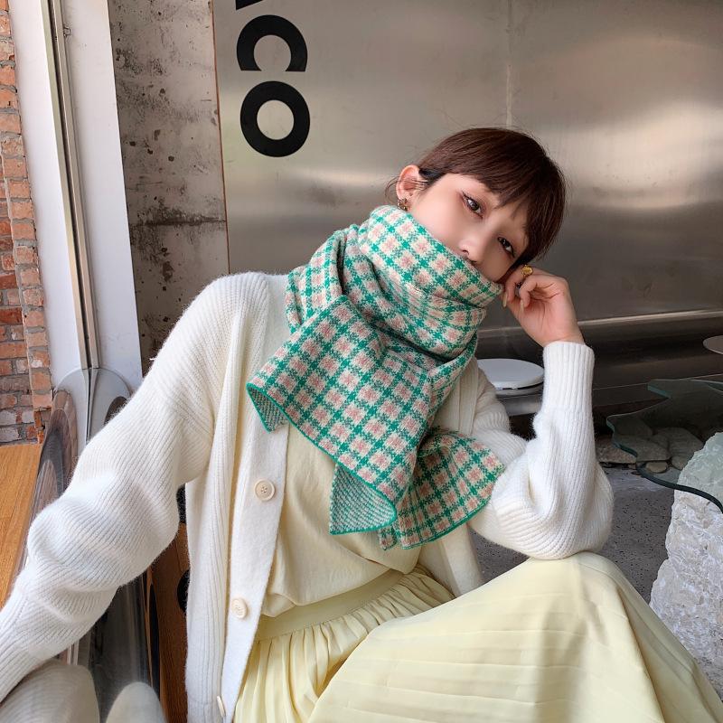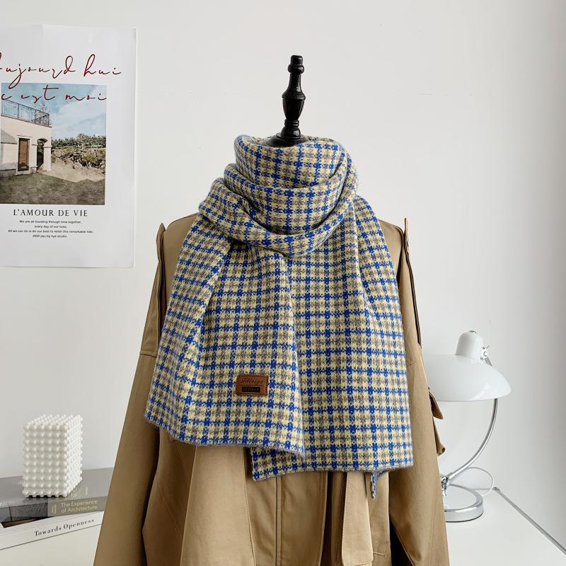 Novo Estilo de Malha de Lã Quente Engrossado Estudante Lenço Xadrez Plana de Malha