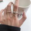 Anel Coreano S925 Prata Dois Dedos Peça Única Feminino Vintage Moda Corrente Borla Bola Redonda Aberto Anel de Dedo Anel de Dedo Comida