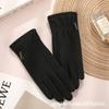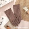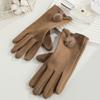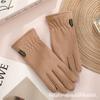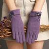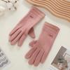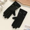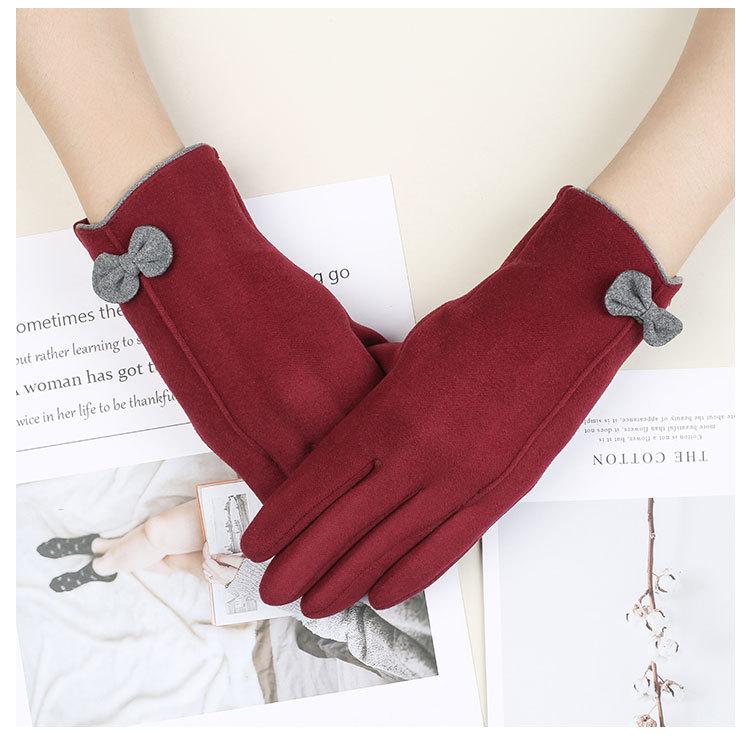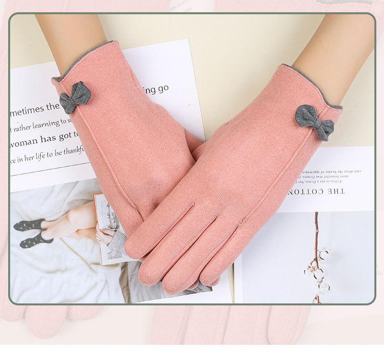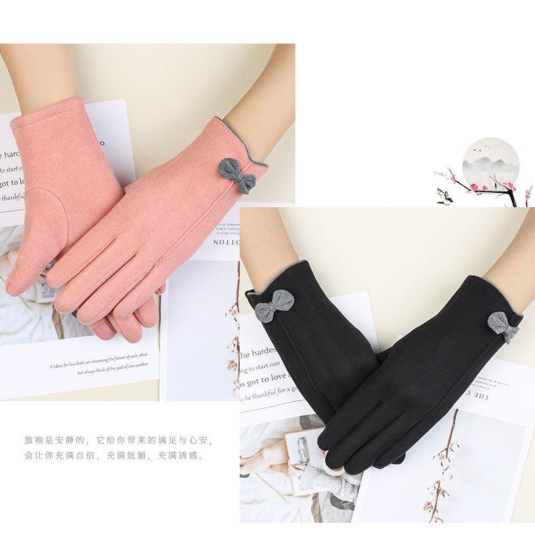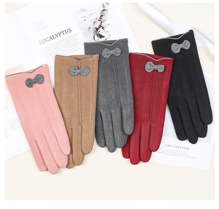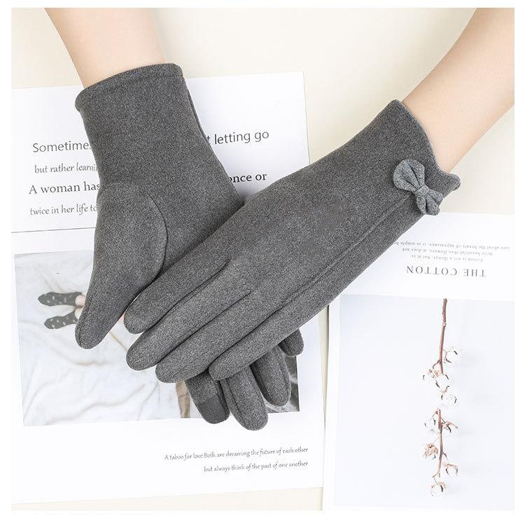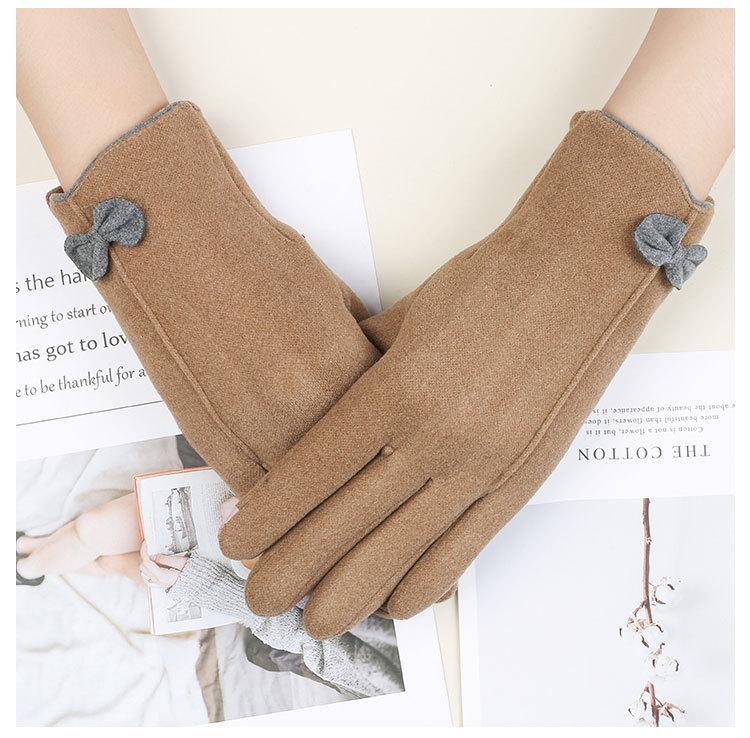 Luvas quentes outono e inverno feminino arco lã forrado engrossado luvas de equitação coelho veludo inverno masculino luvas de tela sensível ao toque