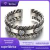 Gato Antigo Ning Geométrico Oco Redondo Anel Aberto Estilo Frio Versão Coreana Retro Moeda Velha Anel de Cobre para Mulheres