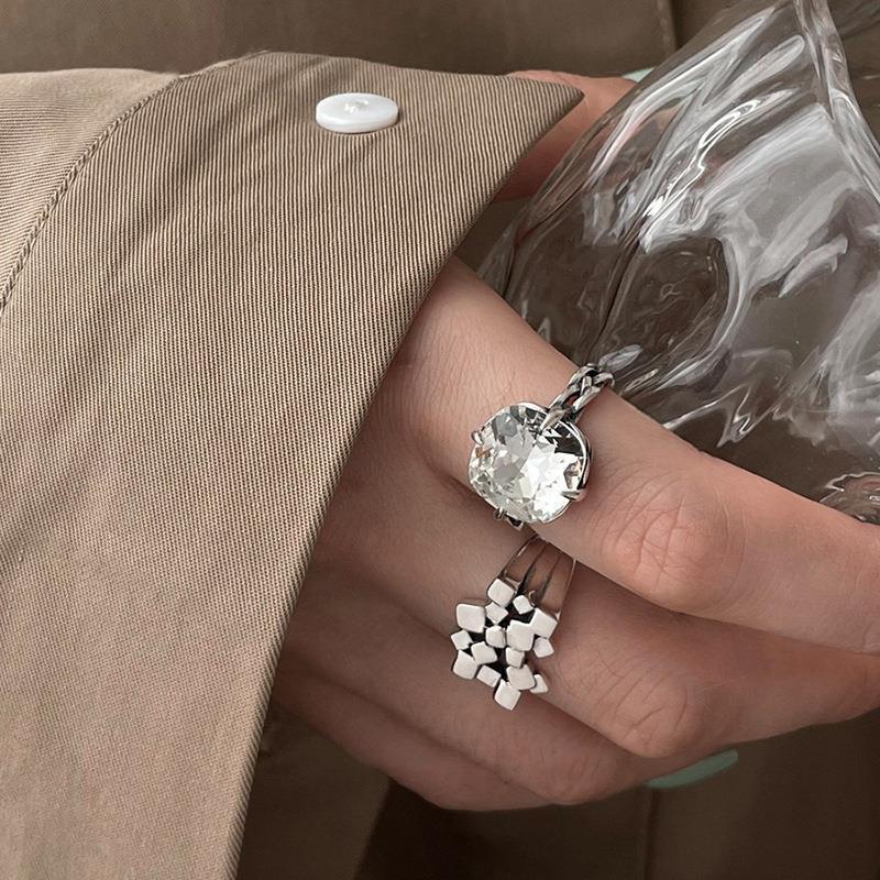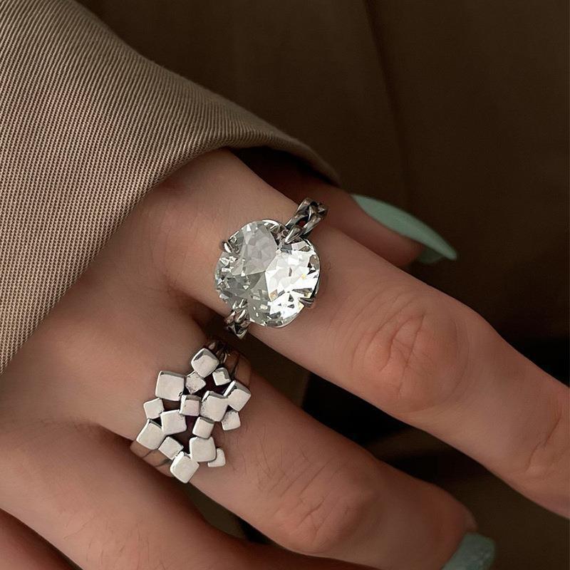 Praça brilhante Zircon anel feminino vintage moda distintivo geométrico irregular s925 prata aberto anel de comida finger ring