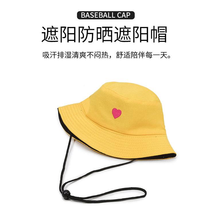 Chapéu de Sol ao Ar Livre Chapéu de Pescador Feminino Estilo Coreano Bordado Chapéu de Bacia de Amor Removível à Prova de Vento Corda Compras Chapéu de Viagem