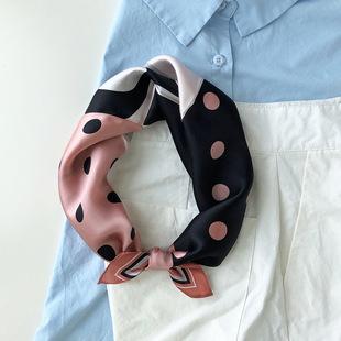 Outono e inverno novo lenço de seda proteção de pescoço lenço de seda profissional versátil pequeno lenço quadrado bolinhas simples lenço
