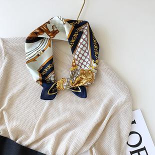 Lenço de cabeça de cavalo estilo europeu e americano outono e inverno lenço de faixa de cabelo europeu e americano lenço quadrado de seda francesa dourada pequeno lenço quadrado protetor de pescoço