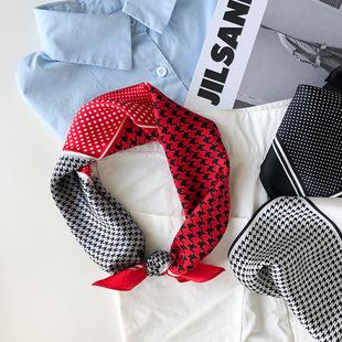 Simples outono e inverno novo cachecol de seda pied de poule de seda crepe simples cetim decorativo cachecol de seda feminino seda amoreira feminino