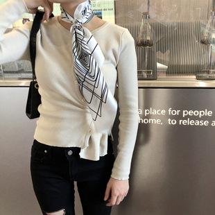 Outono e inverno novo estilo simples chique lenço de seda branco geométrico amoreira lenço de pescoço de seda lenço quadrado de seda feminino