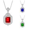 Transmissão ao Vivo Liquidação Imperdível de Novo Colar Pingente Retangular Elegante com Pedra Preciosa Diamante, Colar Pingente Quadrado com Pedra Preciosa Diamante Azul Vermelho Verde