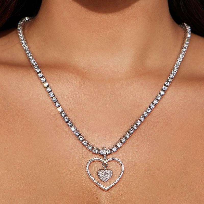 Europeu e Americano Novo Duplo Amor Colar temperamento simples pingente clavícula cadeia Colar acessórios feminino Colar