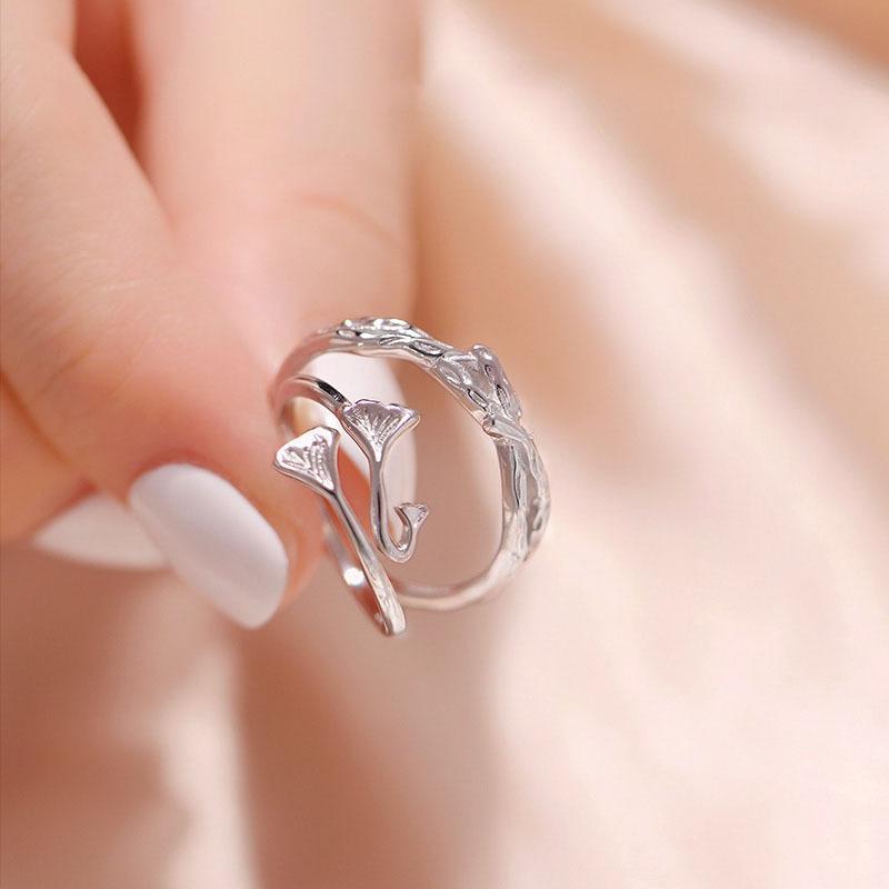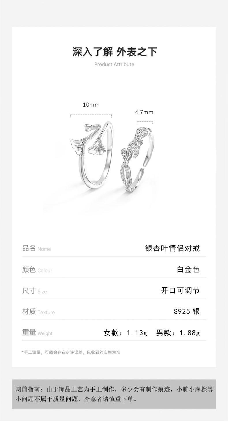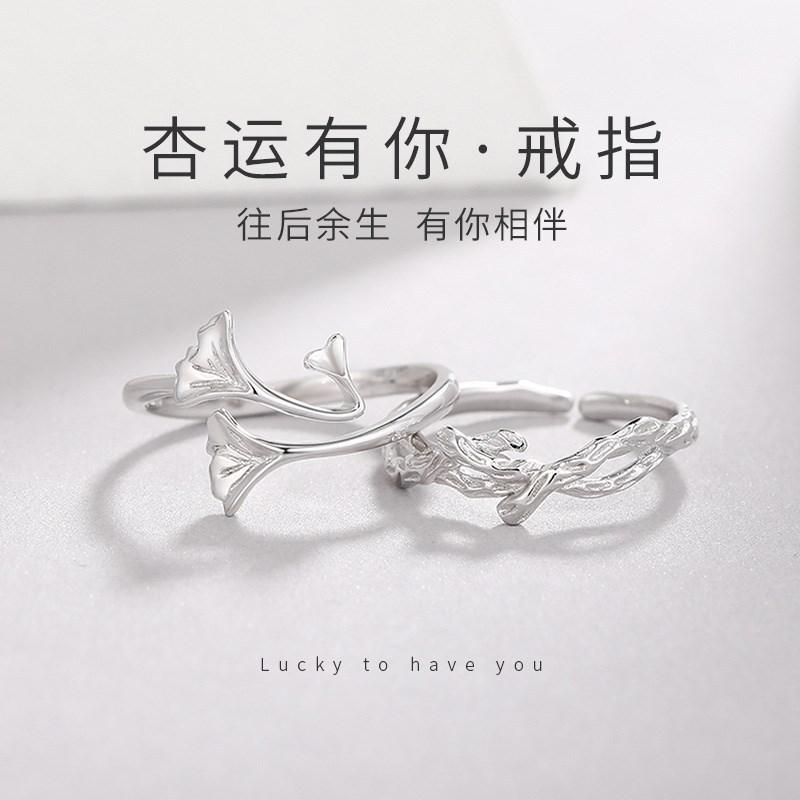 S925 Sterling Silver Ginkgo Leaf Casal Anel um par de design de nicho de alto nível Epithenon Anel de abertura para namorada