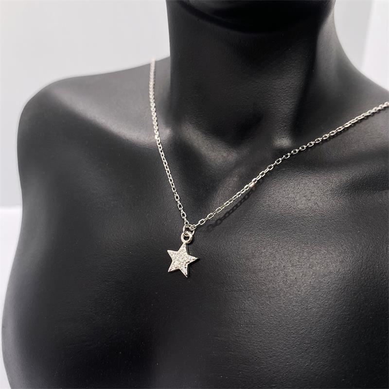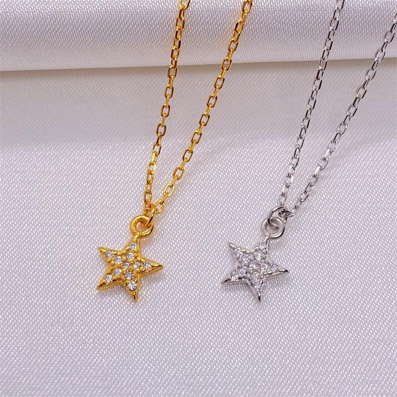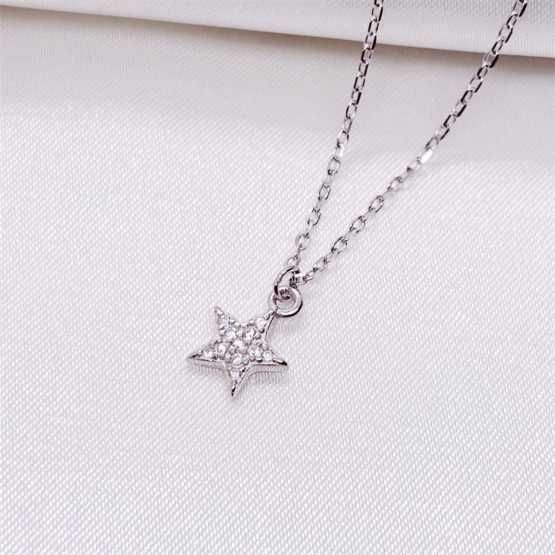 Comércio exterior transfronteiriço venda quente S925 prata esterlina diamante cheio de cinco pontas estrela colar personalidade criativa menina clavícula cadeia atacado