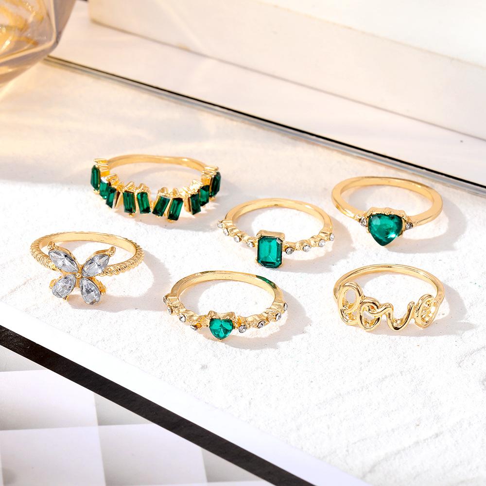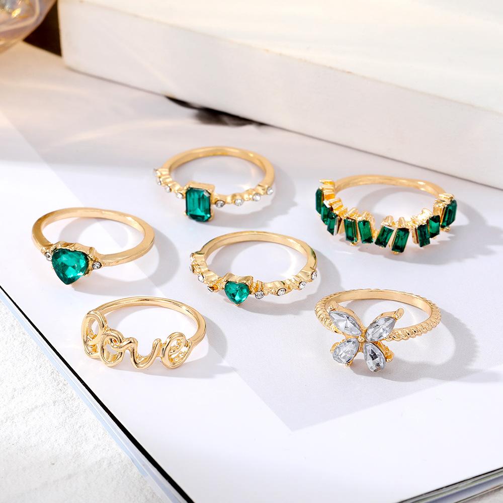 Compre Mu Shang AliExpress Novo Conjunto de Anel de Proteção Ambiental Retro Diamante Incrustado Esmeralda Zircon Borboleta Borboleta 6 peças Anel no atacado no Joom.pro