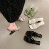 Chinelos de salto grosso para mulheres de verão estilo coreano sandálias e chinelos transparentes simples e elegantes Outer Wear Square Head Half Slippers