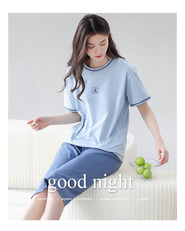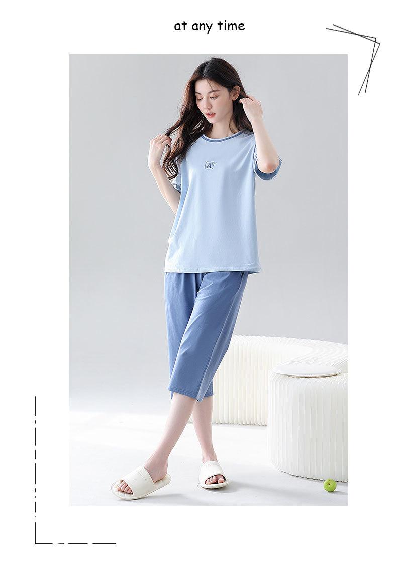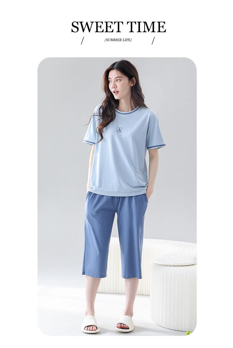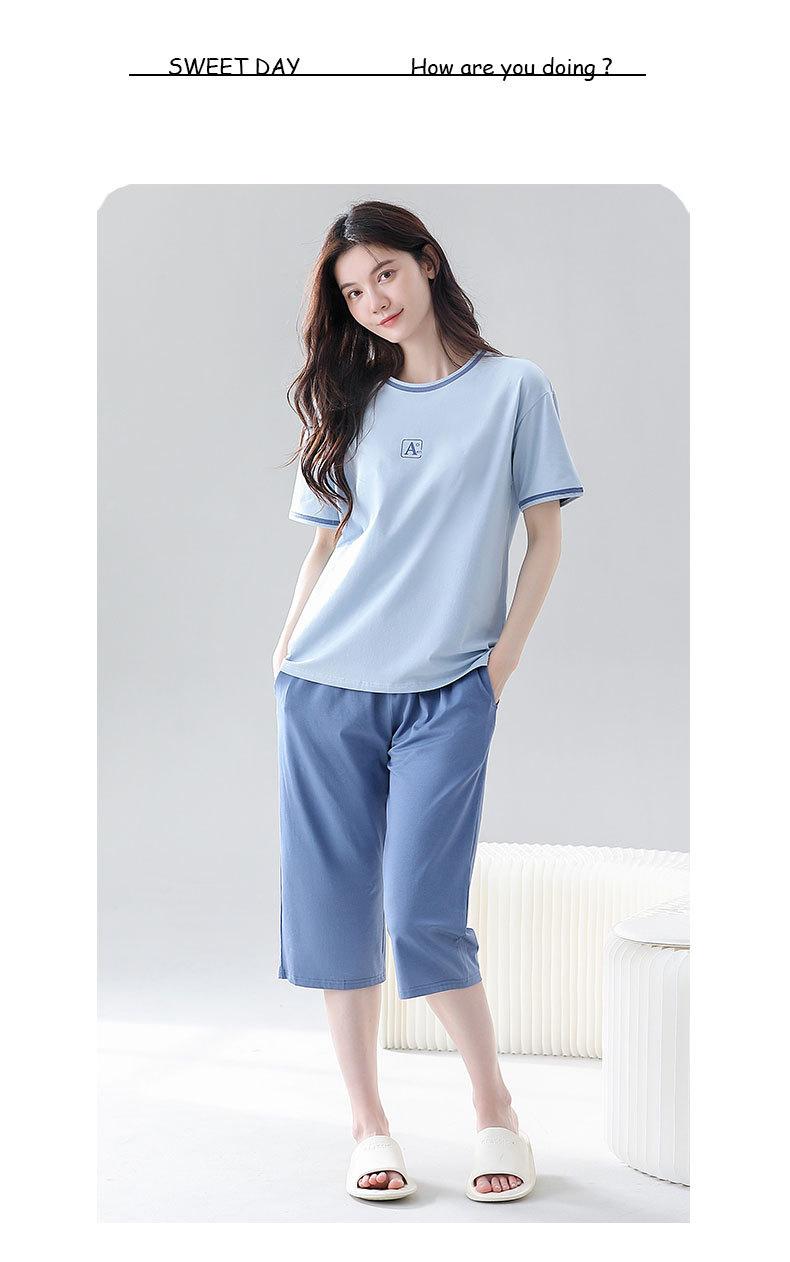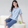 Verão fresco algodão manga curta calças cortadas pijamas mulheres magro esportes lazer fresco confortável ao ar livre homewear terno